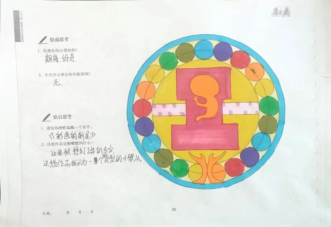 曼陀罗绘画是打开学生心灵窗户的一把钥匙,它能提高人的抗压能力,注意力和定力,提升自我存在感和爱的能力。通过这些规则和对称图形,同学们学着重新认识和接纳自己,让压力得到缓解,情绪得到安定。