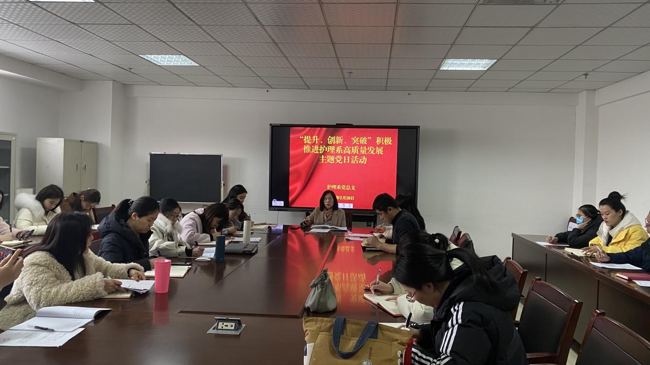 新学期,新面貌,新开局,2024年2月28日,护理系党总支开展“提升、创新、突破”主题党日活动,积极推进护理系高质量发展。护理系党总支书记魏春梅主持本次活动,护理系全体党员教师参加此次活动。