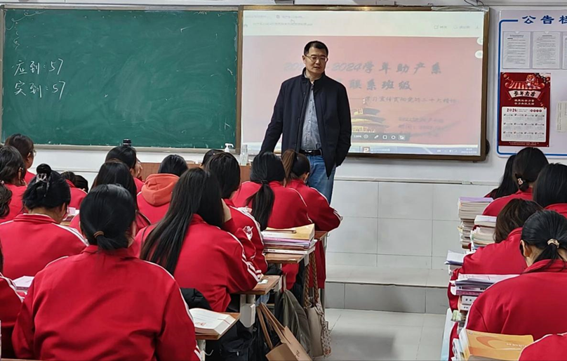 为深入学习贯彻习近平新时代中国特色社会主义思想,推动党员联系班级活动的深入开展,引领青年学生坚定理想信念,明确使命担当,2023年12月29日,助产系党总支副书记于泳到联系班级——2022级高助4班上党课。