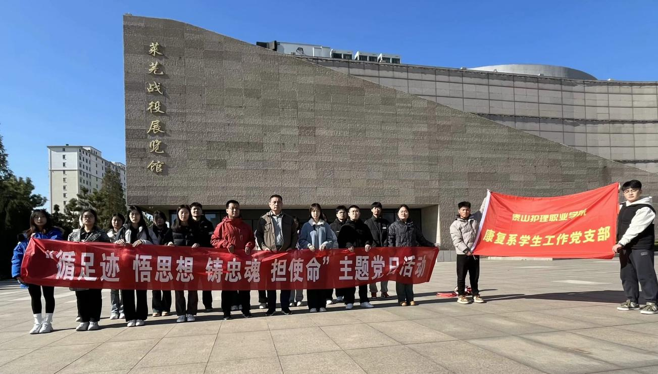 追寻红色印记,弘扬革命精神。为深入贯彻学院“双护理”工程和“三个能力”建设要求,提升党员素质,加强自身能力建设,充分发挥党建带团建的引领作用,康复系于2023年11月17日组织党员老师、学生发展对象、入党积极分子、共青团员共计29人,赴莱芜战役纪念馆开展以“循足迹、悟思想、铸忠魂、担使命”为主题的党日活动。