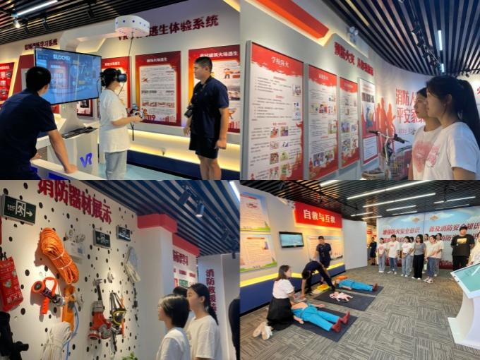 消防战士为师生全面讲解了消防知识,带领大家了解消防设备,通过VR体验火灾模拟现场,让学生通过亲身体验消防训练,感受消防安全的重要性,感悟军人的信仰和宗旨。另外,师生还参观了消防科普教育基地,观看了消防教育安全宣传片。在急救宣传板块,又重温心肺复苏技术和海姆立克急救法等医学知识。
