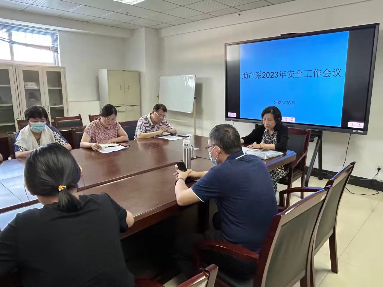 6月21日,助产系召开安全生产工作会议,进一步贯彻落实2023年校园“安全生产月”相关活动要求,守牢安全底线。系主任陈青主持会议,系部全体在校教师参加会议。
