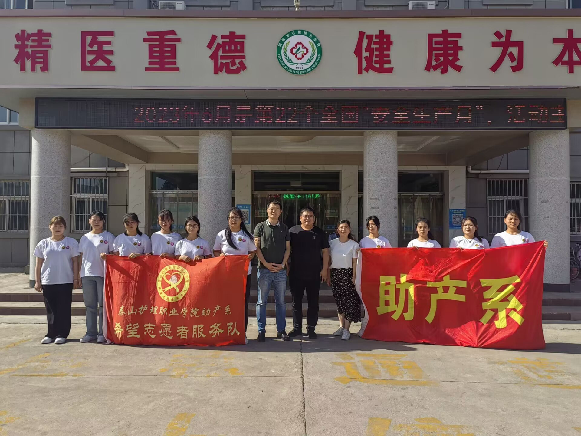 下午,第二支队伍10名志愿者赶赴石横镇卫生院。石横镇卫生院作为与专业紧密结合的场合,考验着同学们的专业知识积累和实践能力。在接下来的工作中,学生志愿者们将根据医院工作安排,分四组在内科、急诊、导诊等岗位参与实践锻炼,并协助卫生院做好卫生知识宣讲、健康咨询等工作。