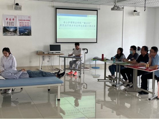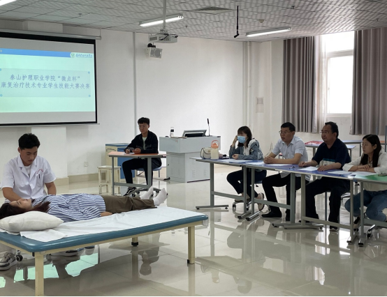 本次大赛按照全国职业院校技能大赛赛相规程设置,优化提升了赛题质量、赛程设置、人员培训,分为理论知识考核和实践技能考核两部分。理论知识考核,采用笔答方式进行。实践技能考核则随机抽取案例进行问诊、评定、治疗三个技术模块考核。参赛选手精神饱满、各显其能,充分将所学理论知识和实践技能相结合,展现了较强的医患沟通能力和专业的康复治疗手法。经过激励角逐,最终有21名学生获奖。