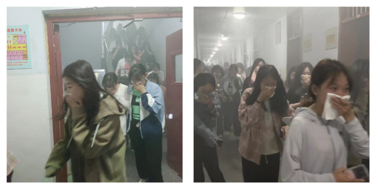 19时30分,响亮急促的警报声在新葡萄8883官网AMG宿舍楼响起,浓浓的烟雾在宿舍内弥漫,老师们迅速到达自己的岗位,有序组织学生疏散。同学们在老师们指挥下,弯腰猫步,用湿手帕或湿毛巾捂住口鼻,快速、有序撤离到指定地点。