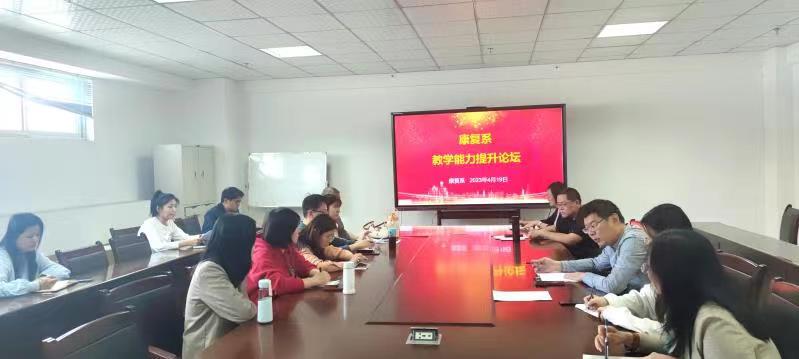 2023年4月19日下午,康复系在图书信息楼401会议室举办全系教学能力提升论坛。康复系主任王海安、副主任高娜及全系教师参加论坛。