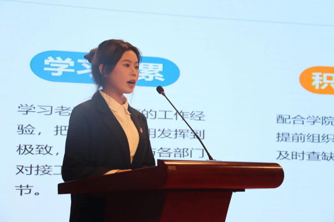 会议指出,院学生组织作为学院党委联系广大青年学生的桥梁和纽带,紧紧围绕学院发展大局和育人目标,较好地发挥了学生组织的“自我教育、自我管理、自我服务、自我监督”作用,创造并保特了学院团学工作的生动局面。下一步,院学生组织尤其是广大学生干部要加强自我修炼,当好学生发展工作的排头兵、先锋队。希望广大青年团员及全院青年学生怀揣梦想、脚踏实地、夯实实现人生价值的基础,努力推动学院学生工作再上新台阶。
