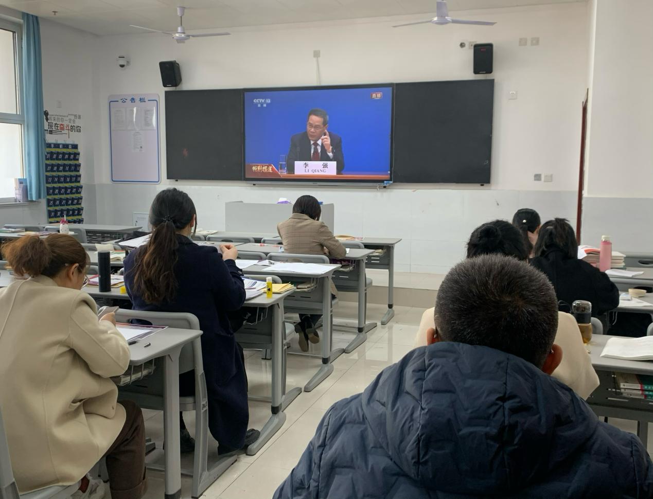 会上,全体思政教师认真观看了国务院总理李强答记者问,对全国两会中提到的“中国式现代化”“全过程人民民主”“新型举国体制”等热词进行了集中学习,并对将全国“两会”精神有机融入思政课课堂进行了探讨。