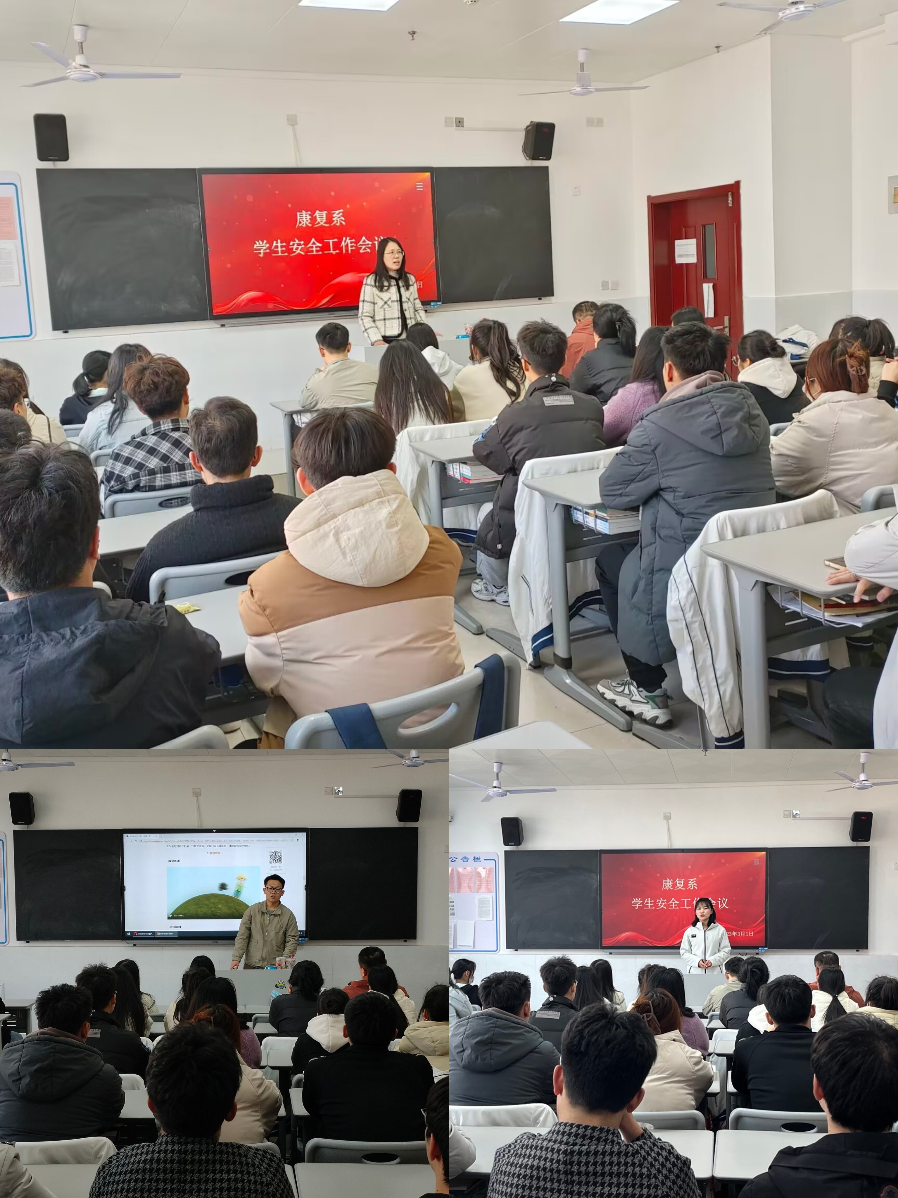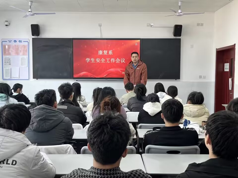 为提高师生安全意识,康复系于2023年3月1日师开展“安全进校园 讲好平安课”主题教育培训。康复系党总支书记于虎、学管副科长陈艳、辅导员老师高智睿、林祁,学生会主席团以及各班主要班委参加活动。