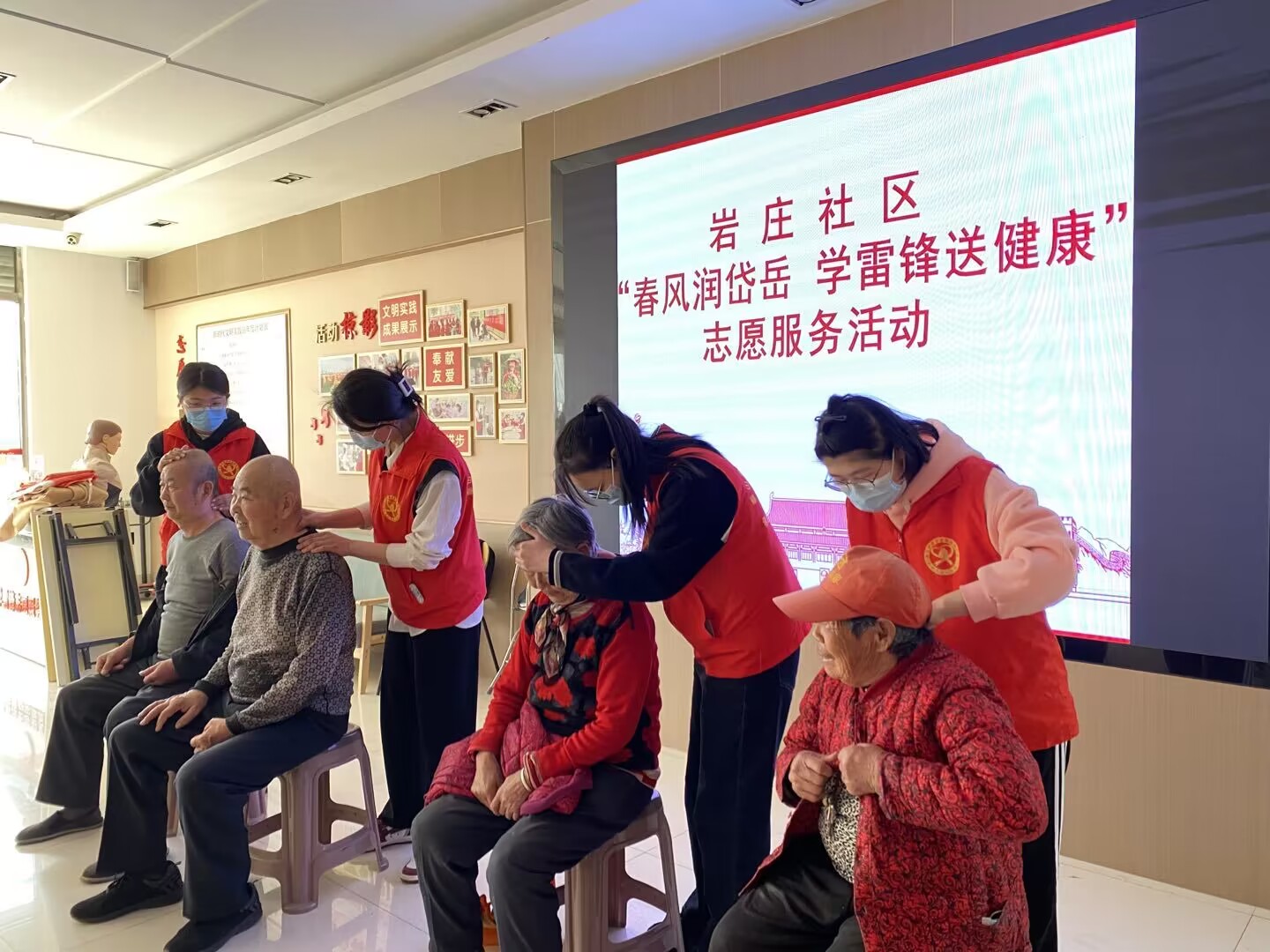 另外,3月5日,在学生工作支部的带领下,20余名志愿者前往岩庄社区,为居民开展义诊、按摩、测量血压等活动,并开展知识讲座,结合当前的甲流、诺如病毒等讲解预防事项,还展示了海姆立克急救法。
