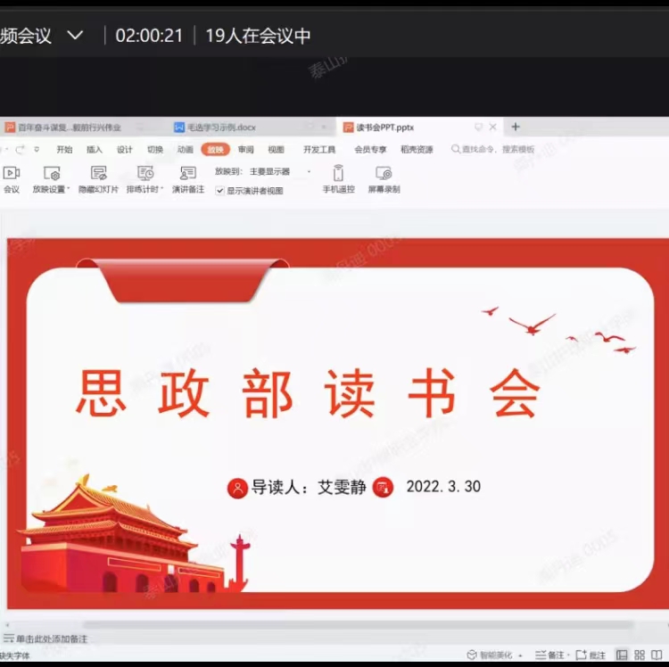 3月30日下午,思政部组织开展教师读原著学经典线上读书会活动,读书活动由艾雯静老师主持,全体思政教师参加。