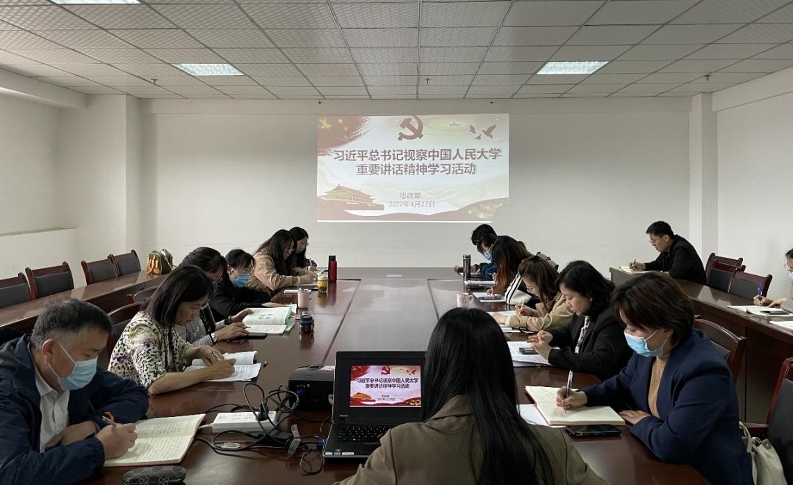 4月27日下午,思政部召开学习贯彻习近平总书记考察中国人民大学重要讲话精神座谈会。思政部主任王英南主持会议,全体思政教师参加学习。