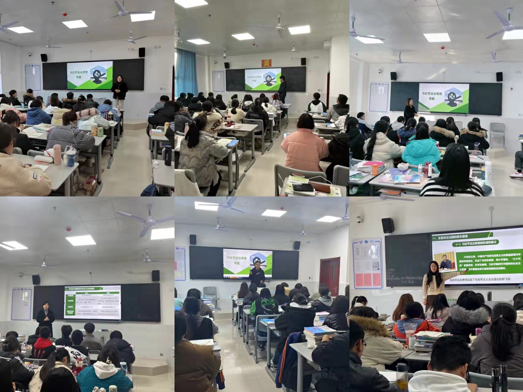 二是积极开展“习近平法治思想”课堂专题教学。为充分发挥思政课堂的主渠道作用,推进习近平法治思想进教材、进课堂、进头脑,全体思政教师在思政课堂上以专题教育的形式开展课堂教学,引导学生努力成为习近平法治思想的积极践行者,为建设法治中国贡献青春力量。