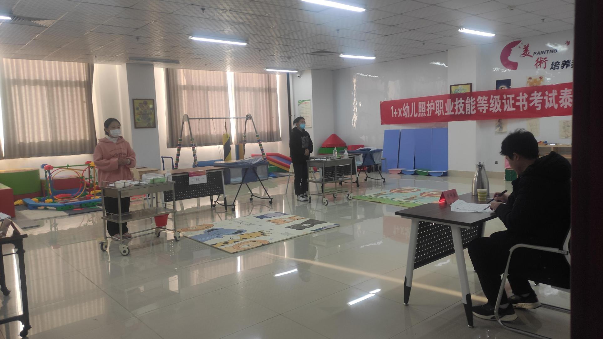 12月18日上午,健康与管理系健康管理专业的50名学生顺利完成幼儿照护职业技能等级证书考试。学院及健康与管理系领导高度重视幼儿照护证书培训和考评工作,从师资队伍建设、教材选用、课证融通、实训室建设、考评点建设等方面,积极推进证书相关试点工作。学院党委委员、副院长荆丽艳莅临考场指导工作。
