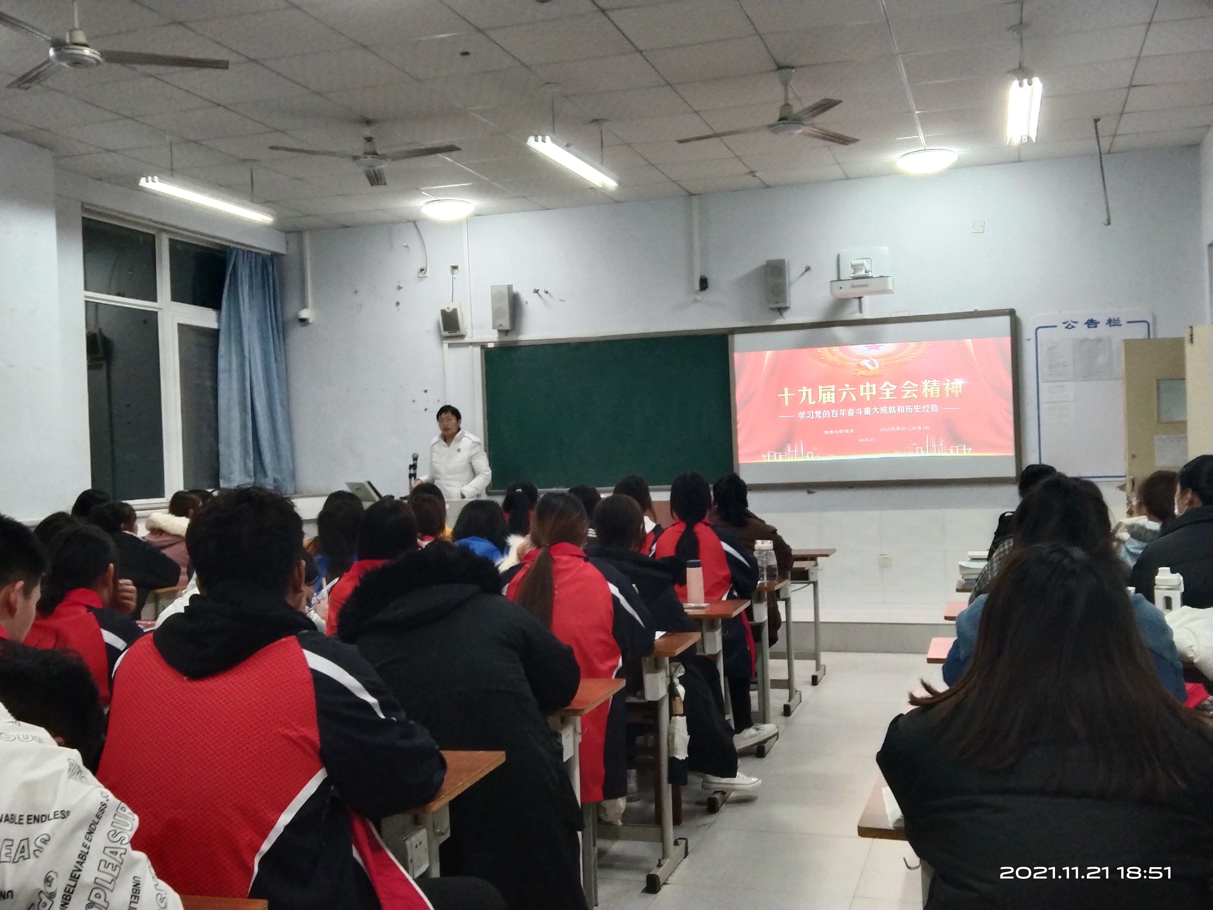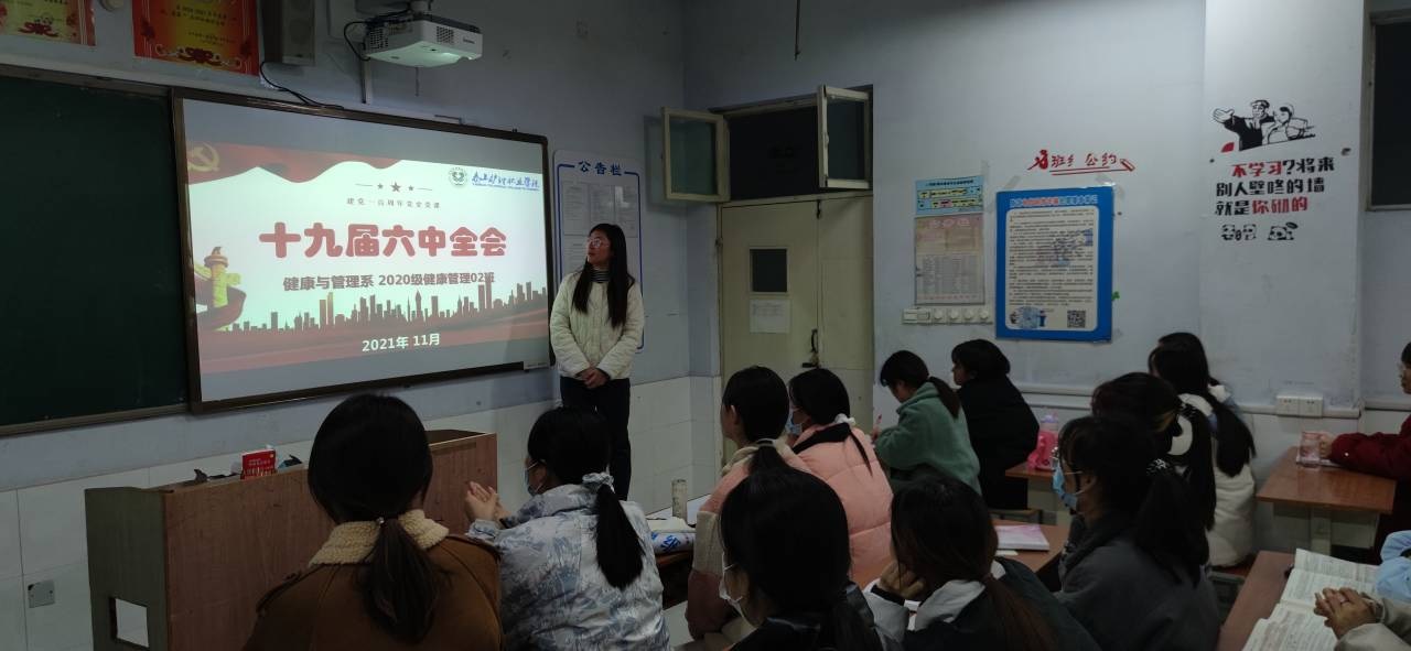 为深入学习贯彻党的十九届六中全会精神,号召广大师生学习党史知识、传承党的精神,按照学工处学习十九届六中全会实施方案要求,健康与管理系于11月21至23日开展学习贯彻党的十九届六中全会系列学习活动。