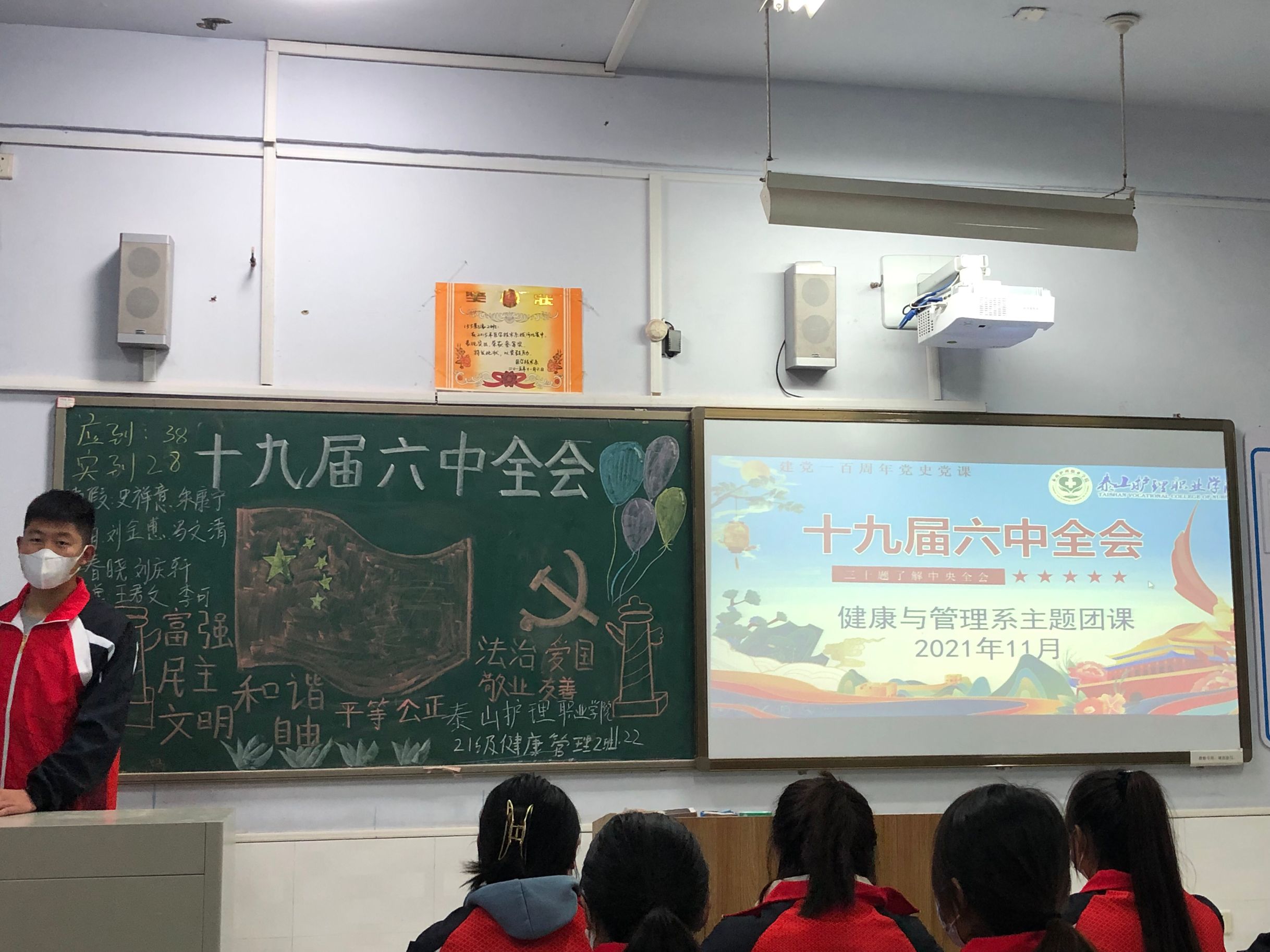 健康与管理系第一时间召开学习部署会,统一要求、统一学习。班主任利用主题班会形式围绕“过去我们为什么能够成功”“未来我们怎样才能继续成功”,全面总结了党的百年奋斗重大成就和历史经验,深刻揭示了党进一步统一思想、统一意志、统一行动的决心,对健康与管理系师生深入了解党的建设与发展历程具有重要意义;各班级充分发挥主题团课优势,采用答题形式深入学习十九届六中全会精神,同学们在抢答的过程中明白了在中国共产党百年华诞的重要时刻,在“两个一百年”奋斗目标历史交汇的关键节点,党的十九届六中全会胜利召开的重要意义;同学们还通过各种手抄报的方式展示十九届六中全会会议内容,抒发了强烈的爱党爱国情怀。