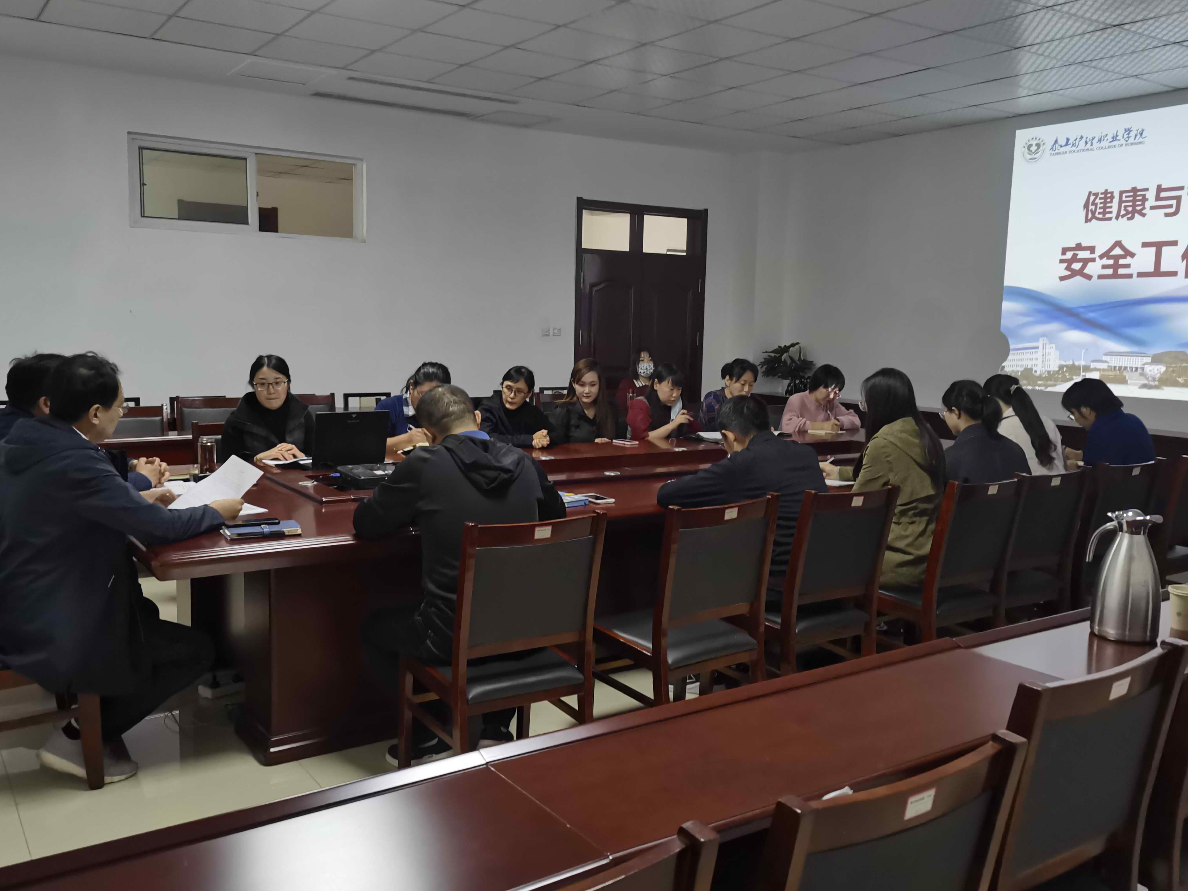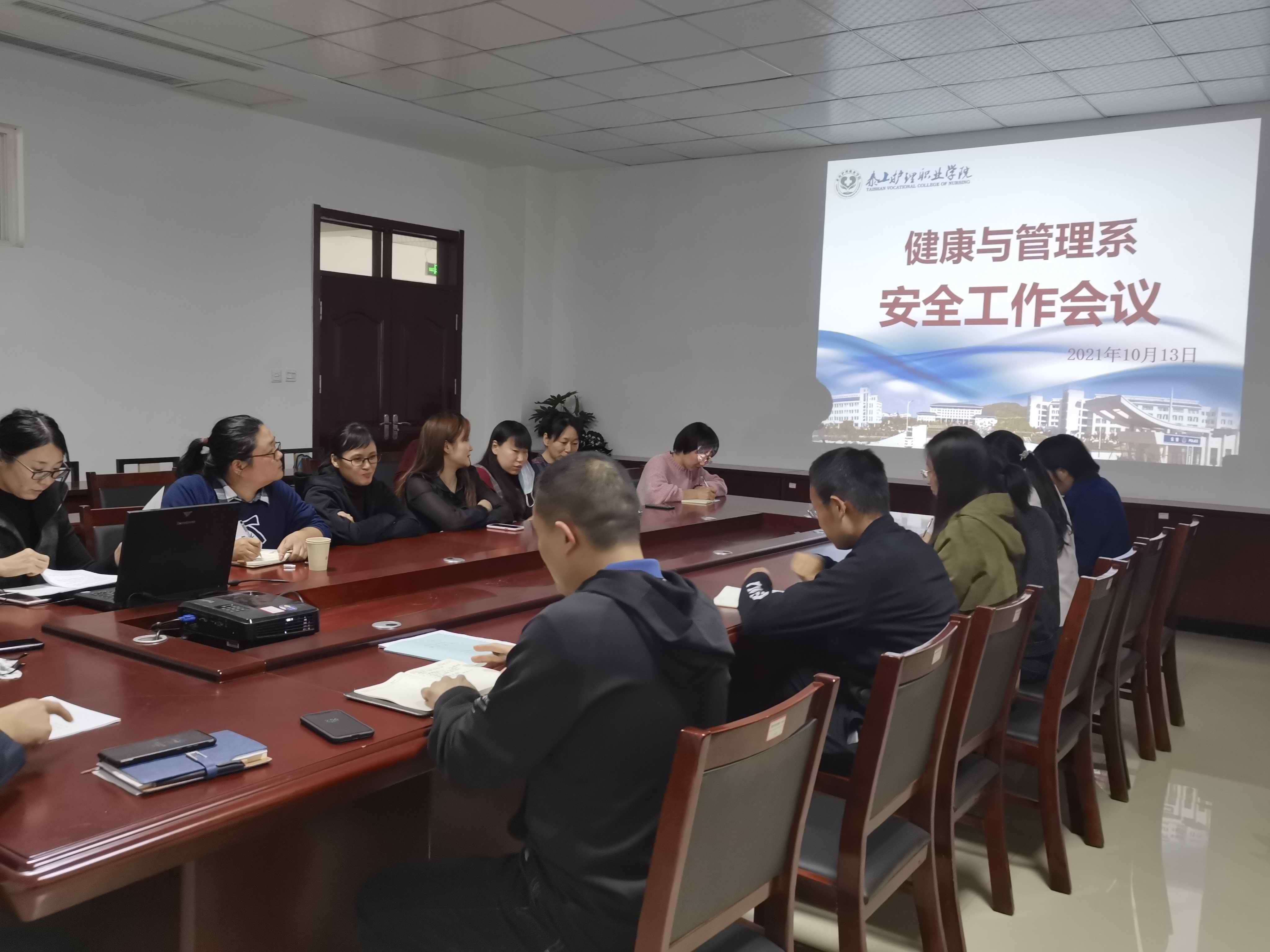10月13日下午,健康与管理系在图书楼318会议室召开安全工作会议。学院党委委员、办公室主任王建伦出席会议,健康与管理系主任党帅主持会议,系全体教师和班主任参加会议。