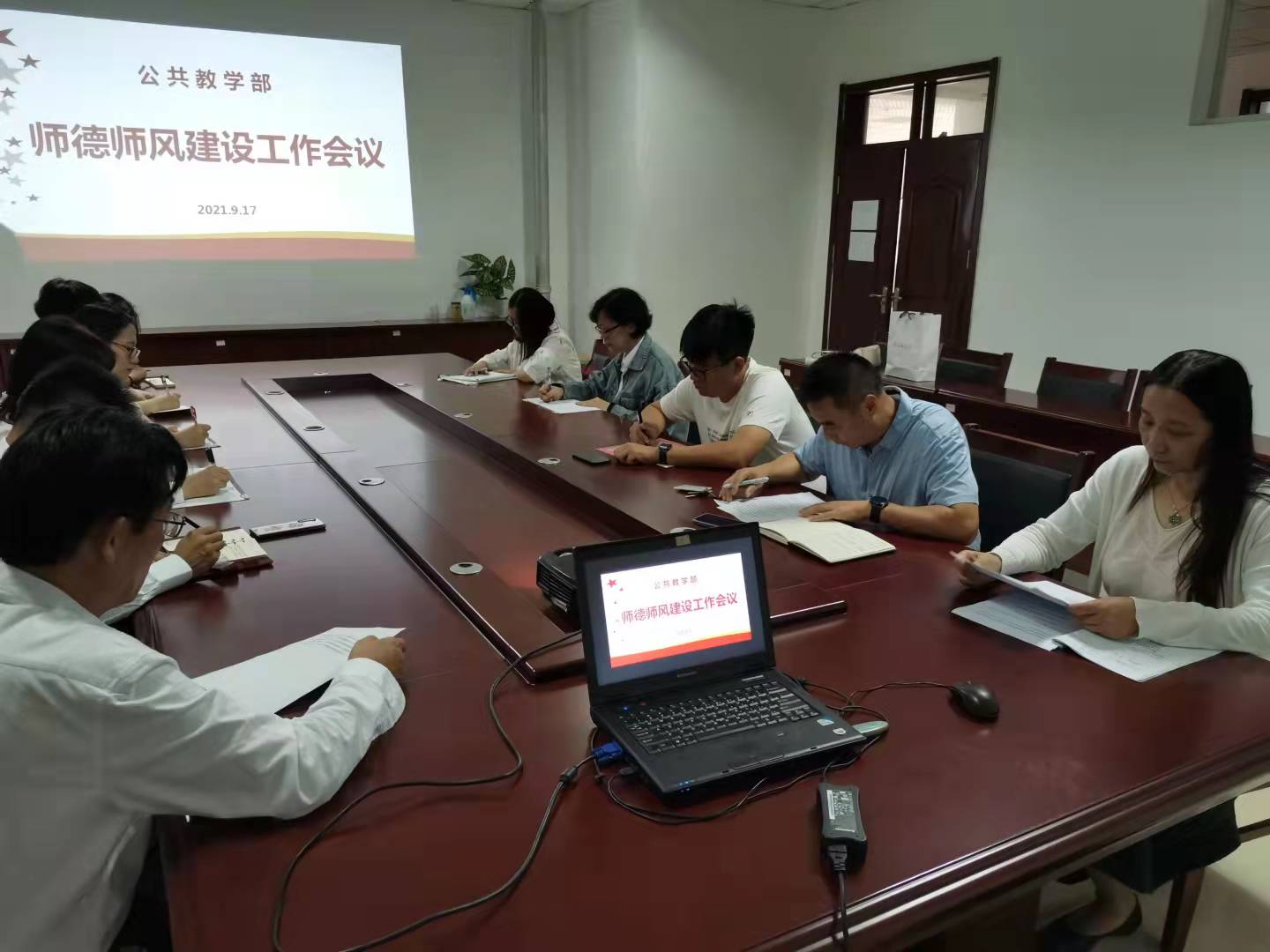 9月17日,公共教学部召开师德师风建设工作会议。公共教学部主任李慧敏、党总支书记吴忠安、副主任俞航以及各教研室主任和教师代表参加了会议。