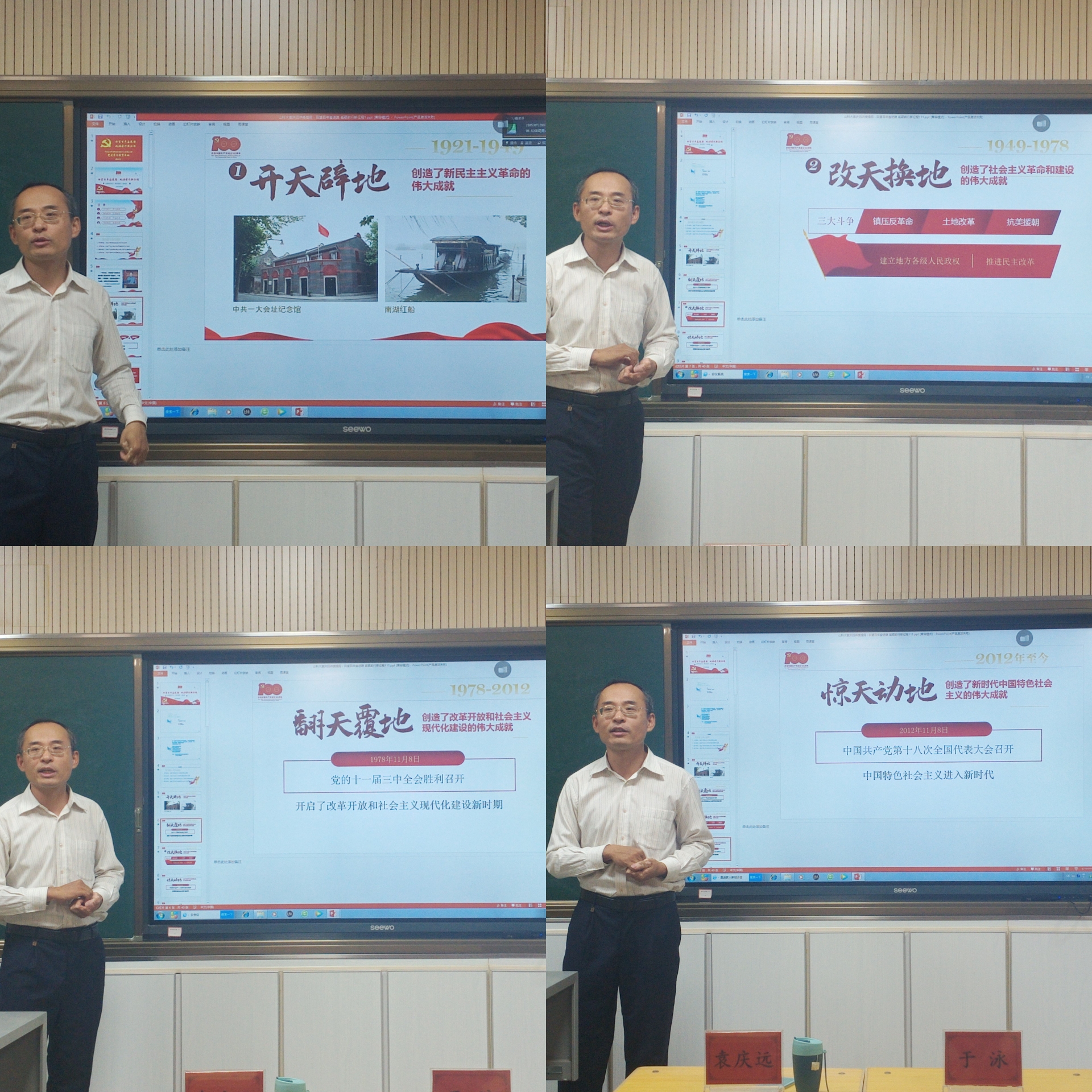 袁庆远教授用了1个多小时的时间为我们作了一场内容丰富,精彩生动,充满激情的宣讲报告。他紧紧围绕学习领会习近平总书记“七一”重要讲话精神,从“百年奋斗伟大成就”“赓续精神血脉相传”“以史为鉴开创未来”“勇担使命强国有我”等四个方面,选取了“开国大典”“十一届三中全会”“党的十八大”“建党100周年大会”等重要历史事件,全面准确、深入浅出地对党波澜壮阔的历史进行了精彩解读,帮助我们深入学习领会习近平总书记关于党的历史的重要论述,充分认识开展党史学习教育的重要意义。