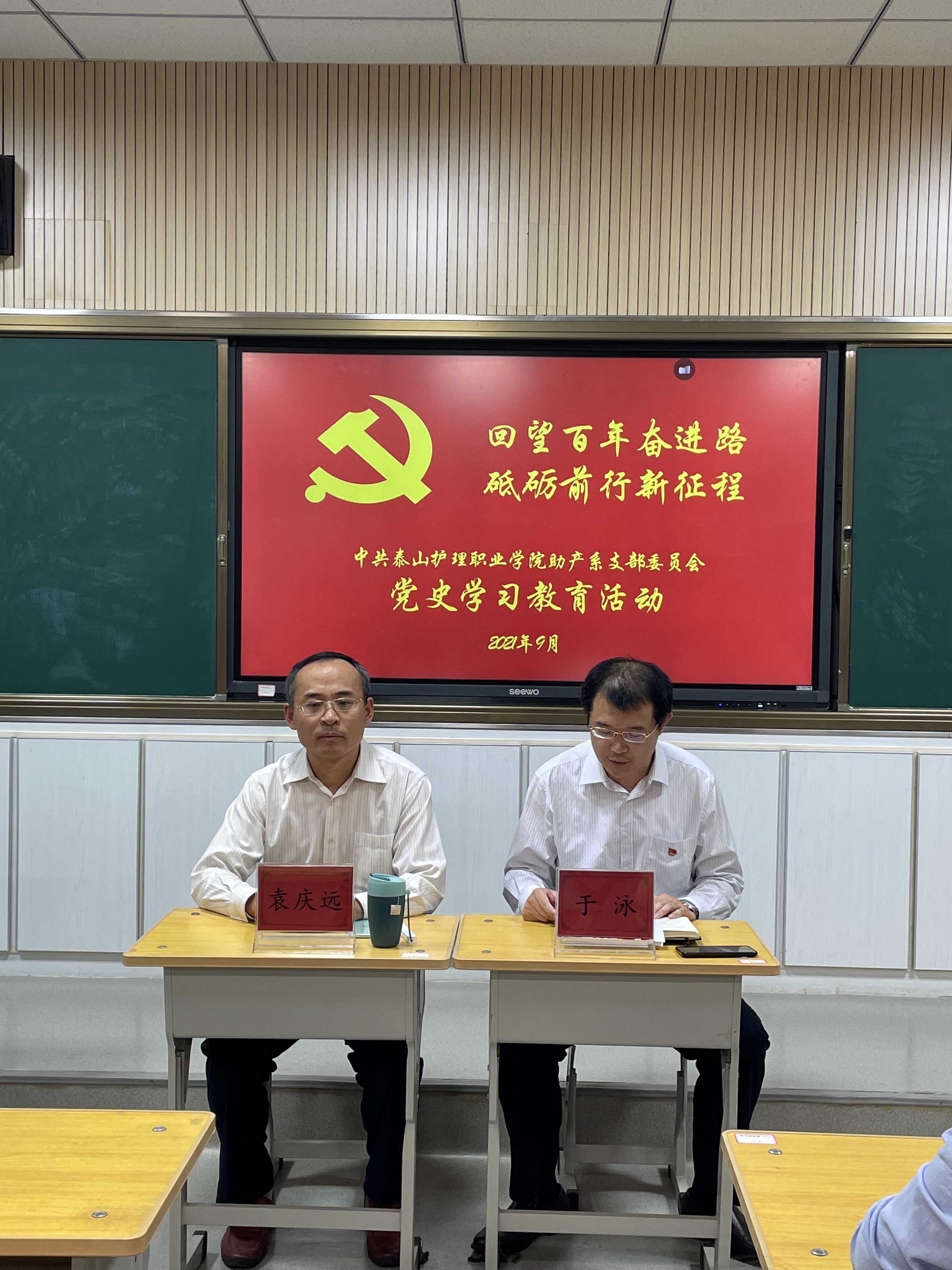 9月29日,助产系党支部组织“回望百年奋进路砥砺前行新征程”主题党日活动。支部邀请山东科技大学学生工作处实践与权益部部长、副教授袁庆远同志做党史学习教育报告会。助产系党支部书记于泳主持活动。助产系全体辅导员、班主任和各班级入党积极分子在现场听报告。根据疫情防控的要求,其他同学通过钉钉视频直播的形式,在各自教室参加学习。线上线下参加报告会共计570余人。