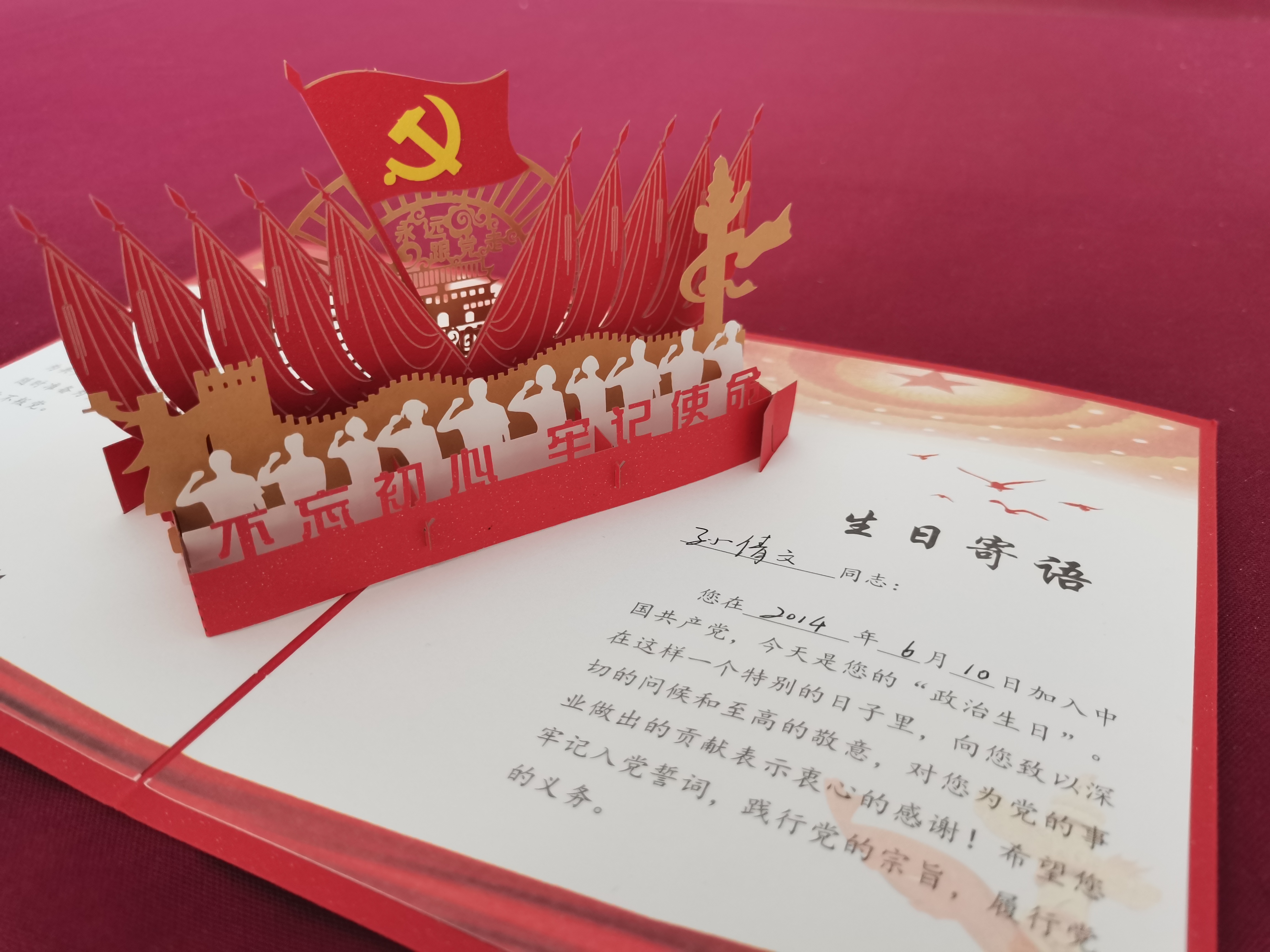 随后,全体党员同志们一起重温入党誓词。支部为全体同志们发放了一份政治贺礼——党史学习教育笔记本。希望同志们在党的百年华诞这一天,牢记入党誓言,开启新的学习之路,保持共产党人初心使命,进一步推进党史学习教育活动取得实效。