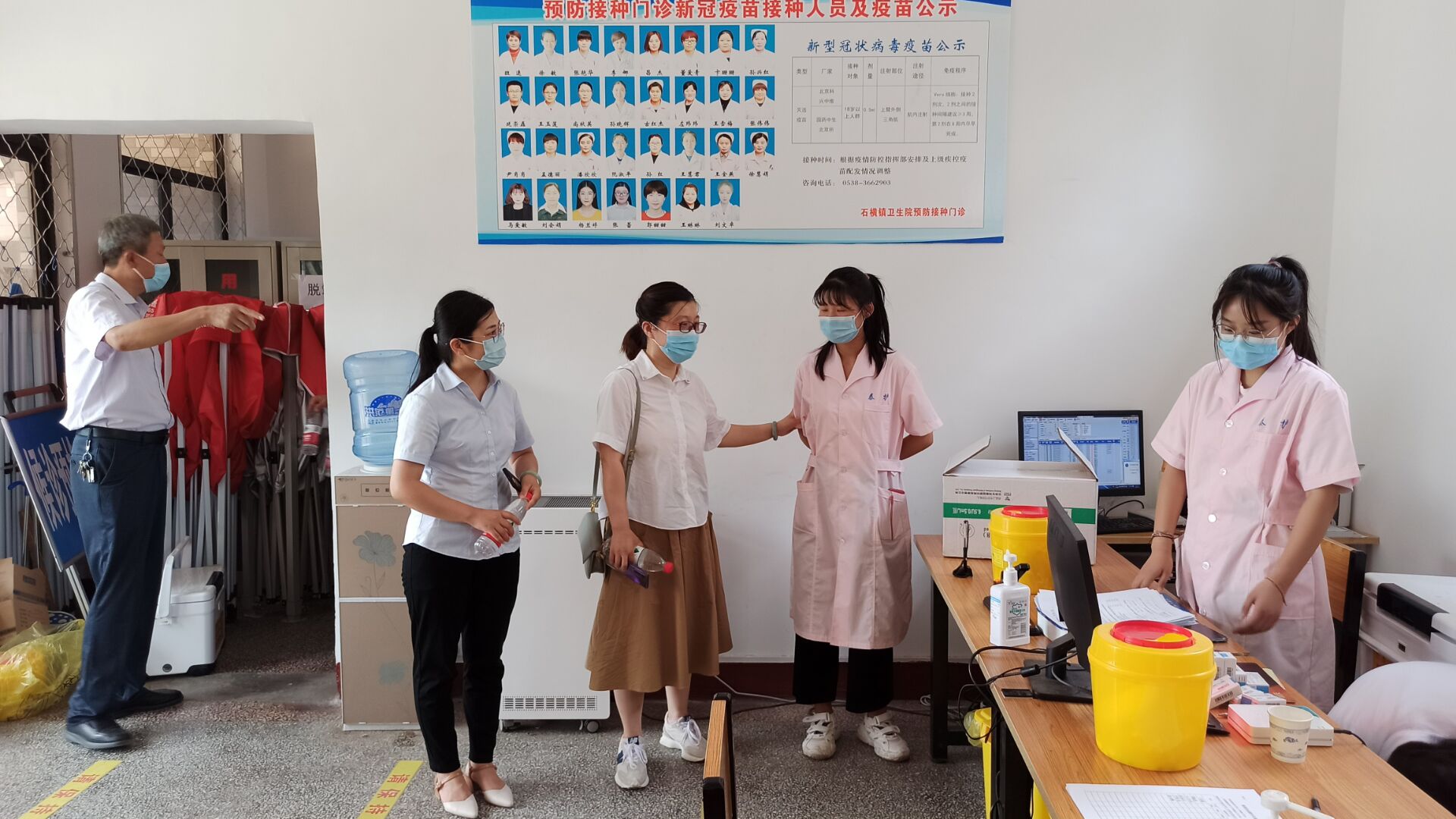 预检分诊工作也非常重要,志愿者不惧辛苦,站在自己的岗位去服务那些需要的病人们。病房里的志愿者们仔细核对病人信息,为病人输液换药。随着新冠疫苗的普及,全国人民积极响应号召,石横镇的村民也不例外,每天来接种的村民们络绎不绝。两位老师来到疫苗接种站看到了志愿者忙碌的身影,她们褪去了稚嫩,化身医务工作者,坚守在自己的工作岗位上。
