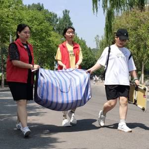 志愿者们在宿舍楼和校门口之间多次往返搬运行李,虽然需要搬运的行李有些沉重,汗水浸湿了志愿者的衣服,但是依旧抵挡不住他们服务的热情。离校实习的同学们也都纷纷感谢志愿者们的帮忙,感受到了学妹们给予的家一般的温暖。