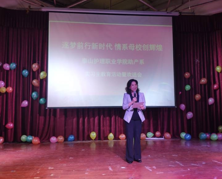 陈青致词,她回忆了与同学一起走过的校园时光,代表助产系向即将奔赴实习岗位的同学们表示衷心祝福,预祝同学们实习顺利。她对同学们为学院和助产系的发展做出的努力表示诚挚感谢,并就实习工作提出要求,希望同学们以德修身,以学立身,提高实践能力,增强技能本领。希望同学们不忘母校培养,努力做出成绩,回馈母校回馈社会,共创美好未来。