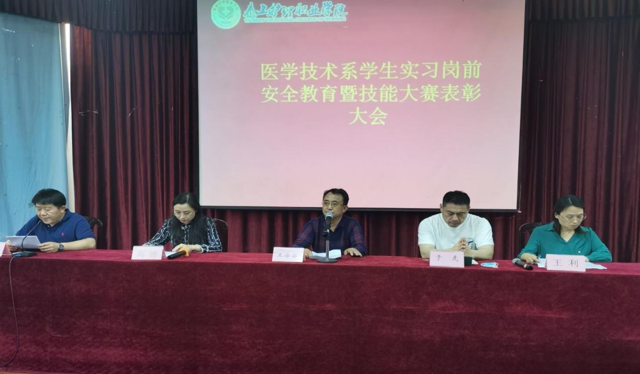 6月1日,医学技术系在报告厅召开学生实习岗前安全教育暨技能大赛表彰大会,医学技术系主任王海安、党支部书记于虎、副主任高娜、教学科副科长王利、学生科副科长韩燕、部分教师及实习学生参加,韩燕主持会议。