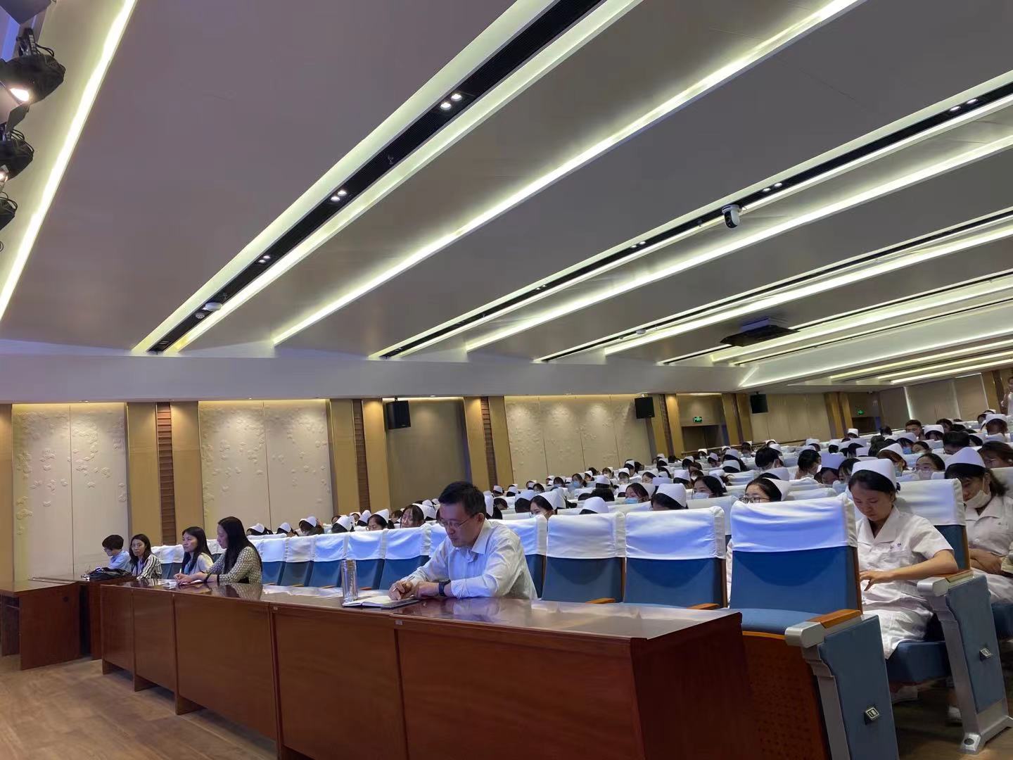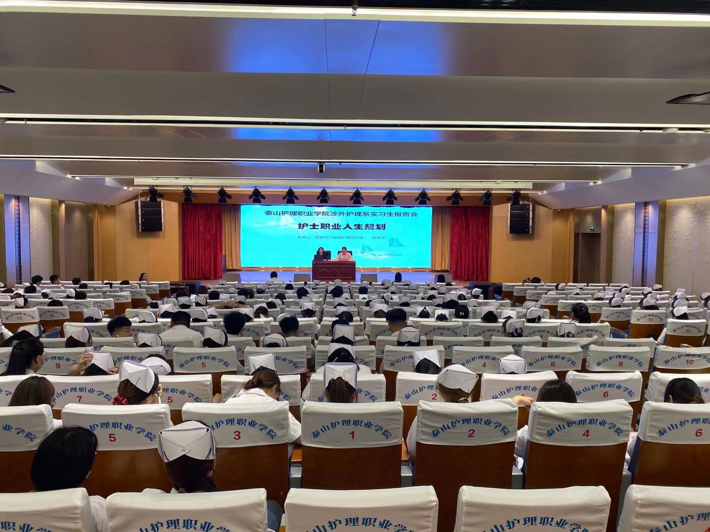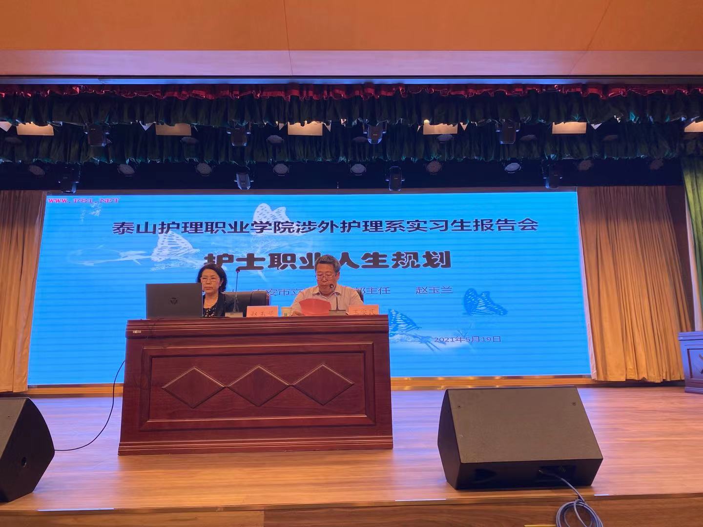 为提高学生对护理专业的认识,为即将到来的实习做好充分的准备,5月19日下午,涉外护理系邀请了知名护理专家、泰安市立医院护理部主任——赵玉兰主任在图信楼报告厅举行“护理职业人生规划”讲座。学院党委委员、副院长王安民,涉外护理系主任李慧敏、党总支书记肖华鹏、副主任朱鹏飞、部分教师以及2019级全体300余名实习班学生聆听了此次讲座。