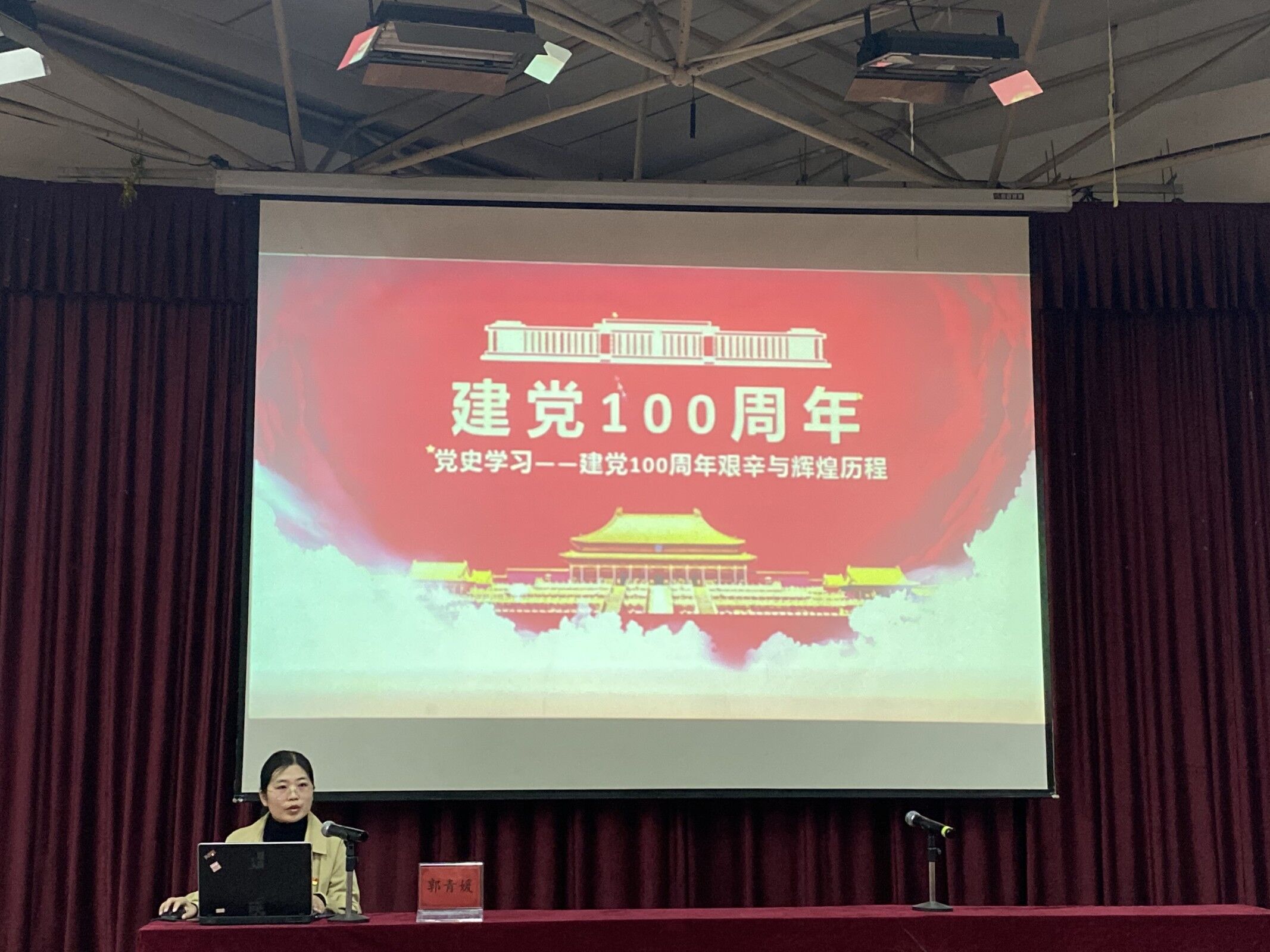 郭青媛同志为青年学生上党课,主要从党的历次代表大会纵览中国共产党的百年奋斗史。