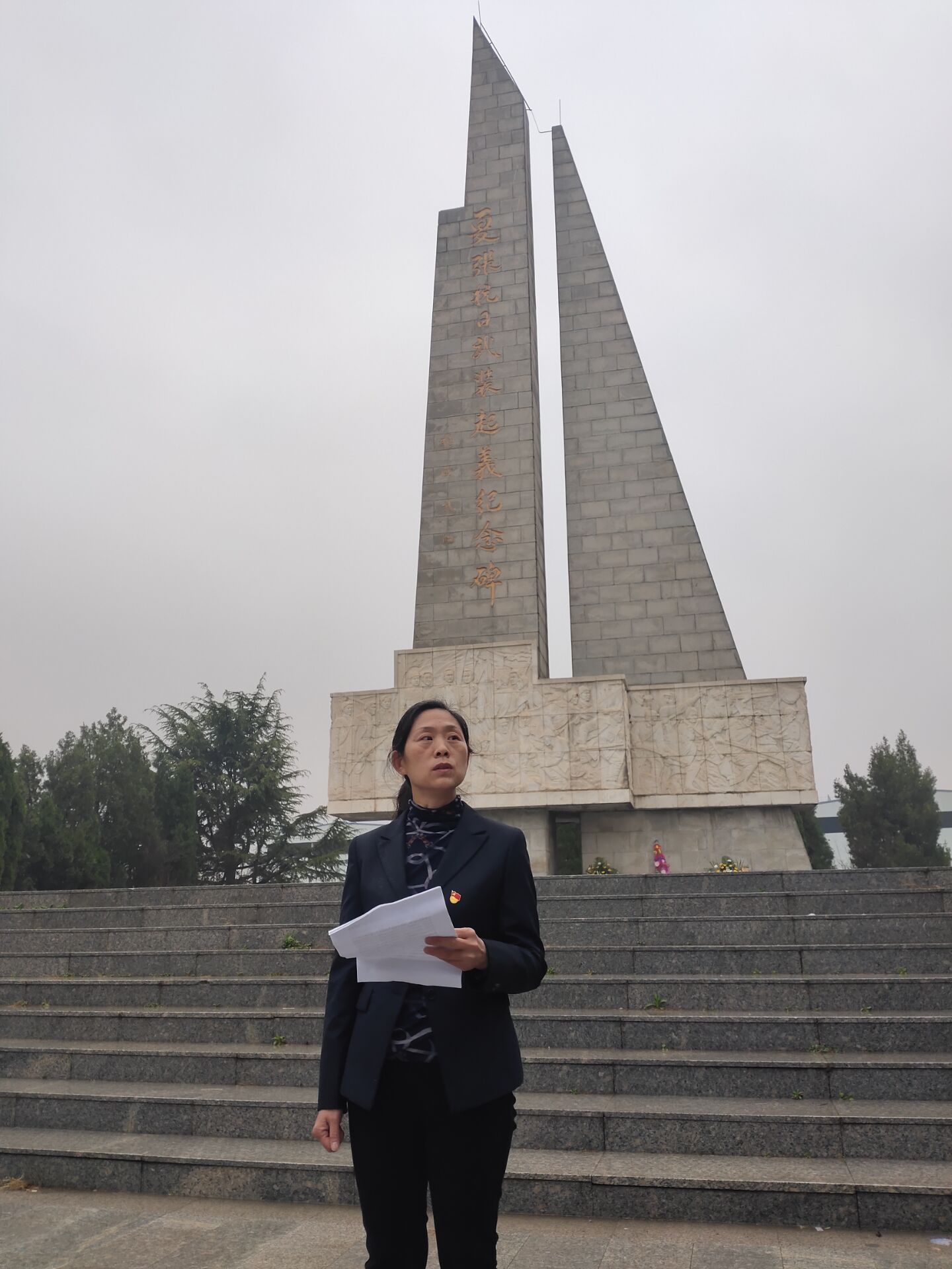 下午14时,护理系党总支书记魏春梅带领全体党员在纪念碑前庄严肃立,向纪念碑献花、鞠躬敬礼,重温入党誓词,并瞻仰纪念碑。随后,大家一起追思先烈事迹,缅怀英烈崇高精神,表达无比崇敬之情。