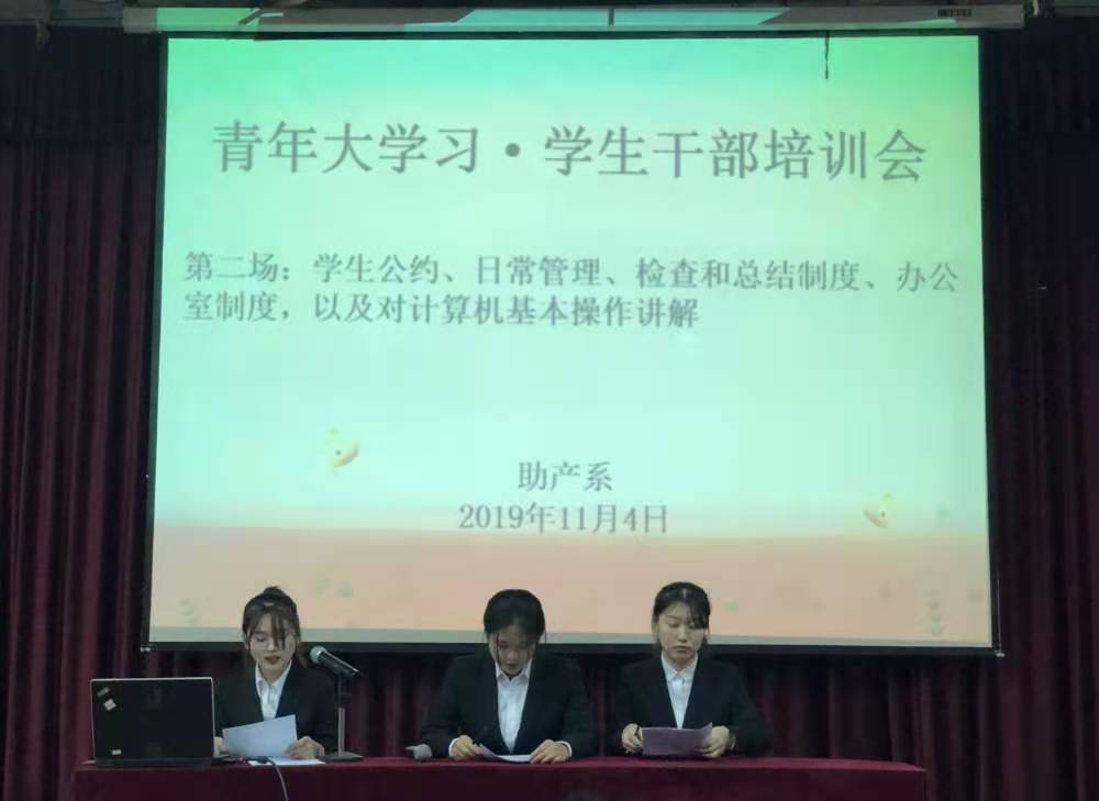 培训期间,于泳以“对邪教说不”为主题,开展反邪教主题警示教育活动;助产系党支部孙倩文同志带领全体成员一起学习了十九届五中全会精神,提升同学们对全会精神理解;公共教学部思政教研室赵环老师向大家宣讲了宪法和我国宗教政策知识,提高了助产系学生干部的法律素养,树立了法治观念;学生会主席团分别对团支部工作、学生会工作的性质定位、全体学生会成员的素质培养、工作中的具体实践、宣传工作进行讲解,并对计算机基本操作进行培训。12月10上午,团总支组织了“青年大学习”培训结业暨学生班干部选拔理论考试,对活动开展成效进行检验,进一步推进十九届五中全会落地落实。