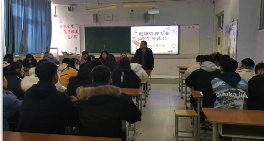 12月23日,基础医学教学部在2号教学楼2206教室召开学生座谈会。基础医学教学部主任安立冰、副主任曾守静、辅导员、班主任以及健康管理2个班的24名学生代表参加会议,曾守静主持会议。