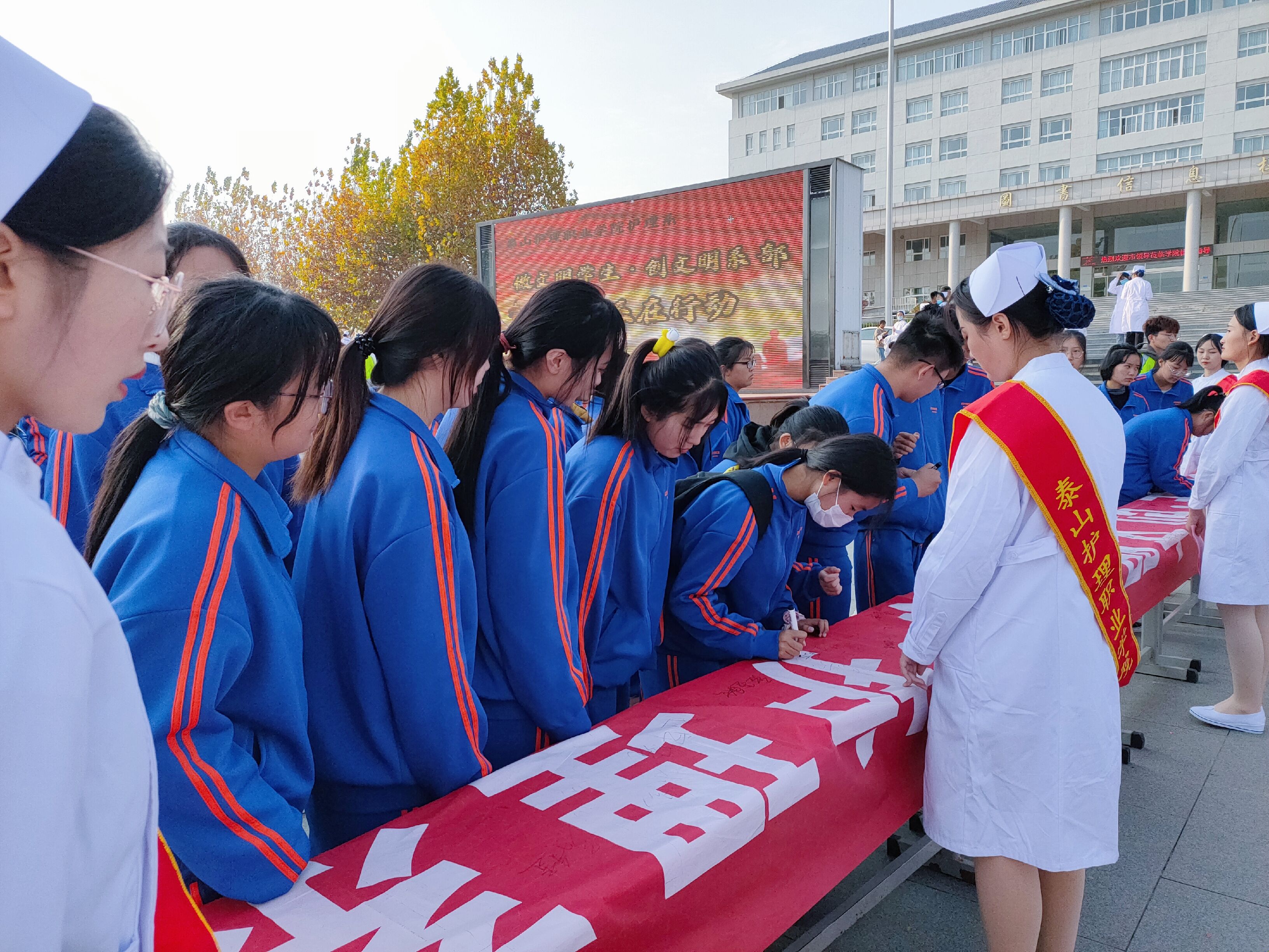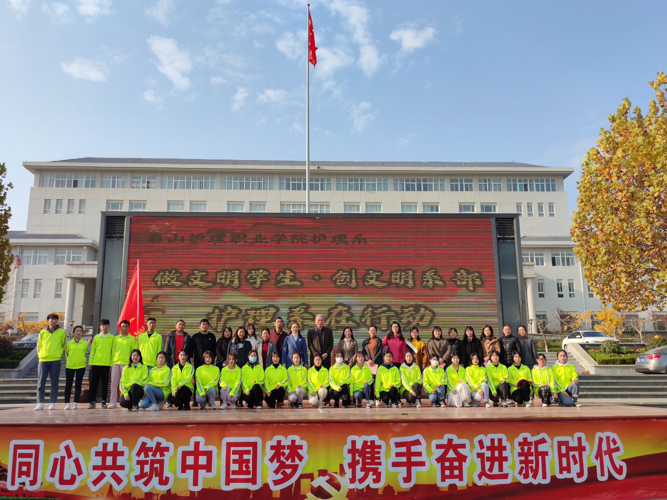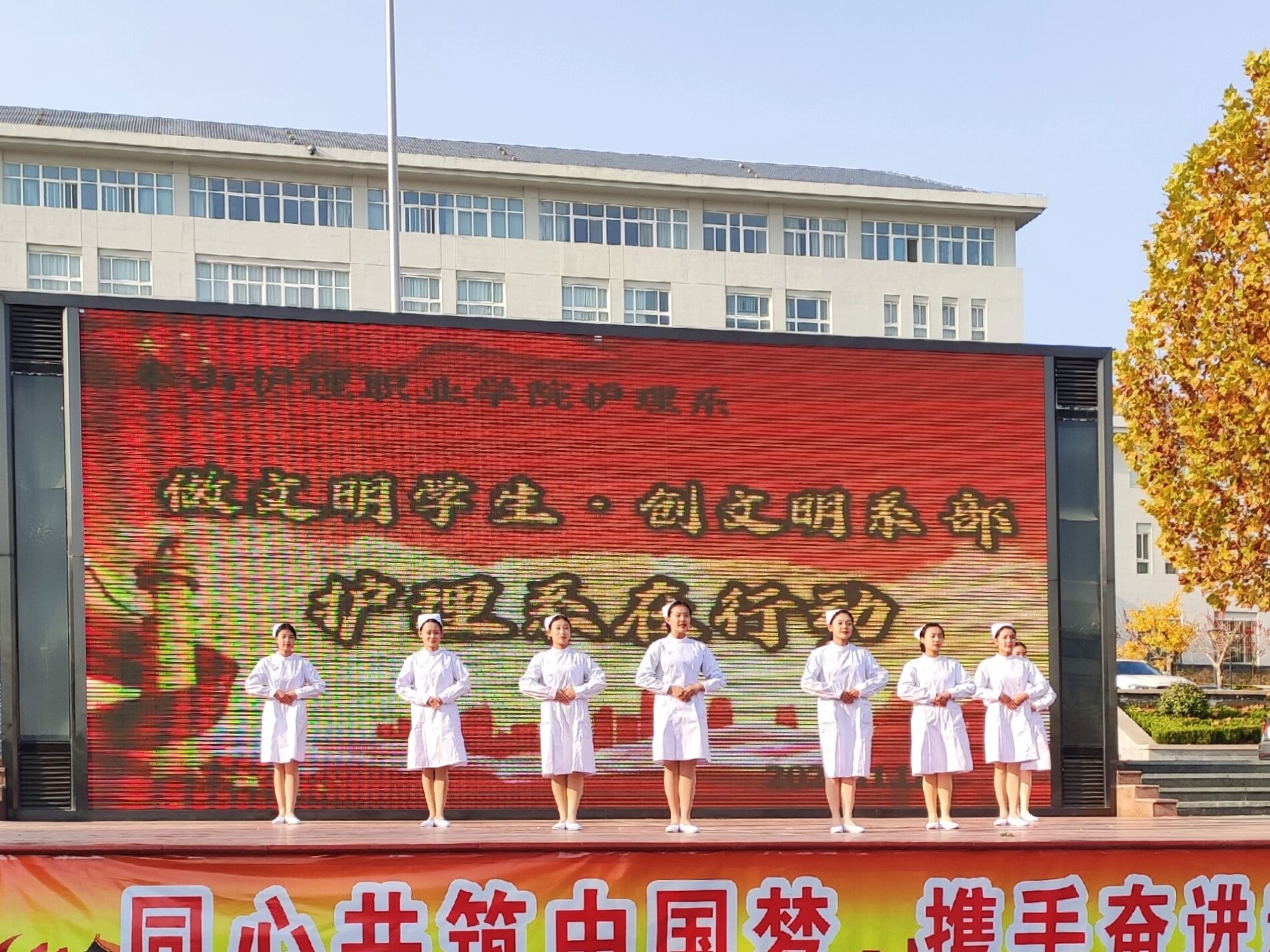 为进一步落实文明校园的创建工作,加强系部管理,提高文明素质,彰显系部特色,促进个性发展,争做文明行为的传播者。11月11日,学院护理系在LED广场举行“做文明学生·创文明系部·护理系在行动”文明启动仪式。学院党委副书记马腾文、护理系主任李红伟、护理系党总支书记魏春梅、学工处副处长李莉、护理系副主任宋菲菲、护理系全体学管及班主任老师等出席启动仪式。魏春梅主持仪式。