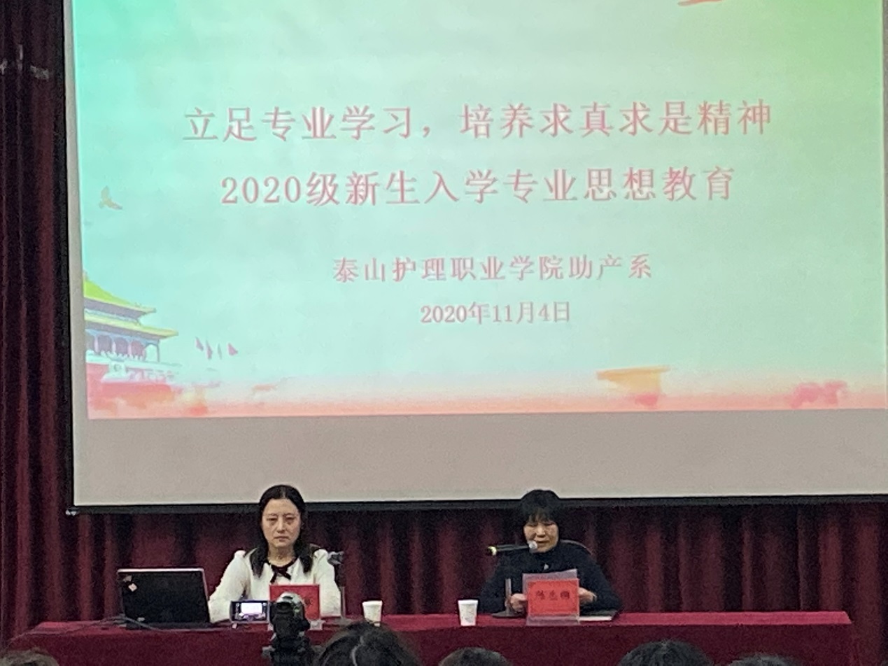 报告邀请泰安市妇幼保健院护理部主任杨爱军做专业思想教育报告,助产系副主任陈忠梅主持,助产系副主任于泳、徐志国老师和20级全体同学共同参加。