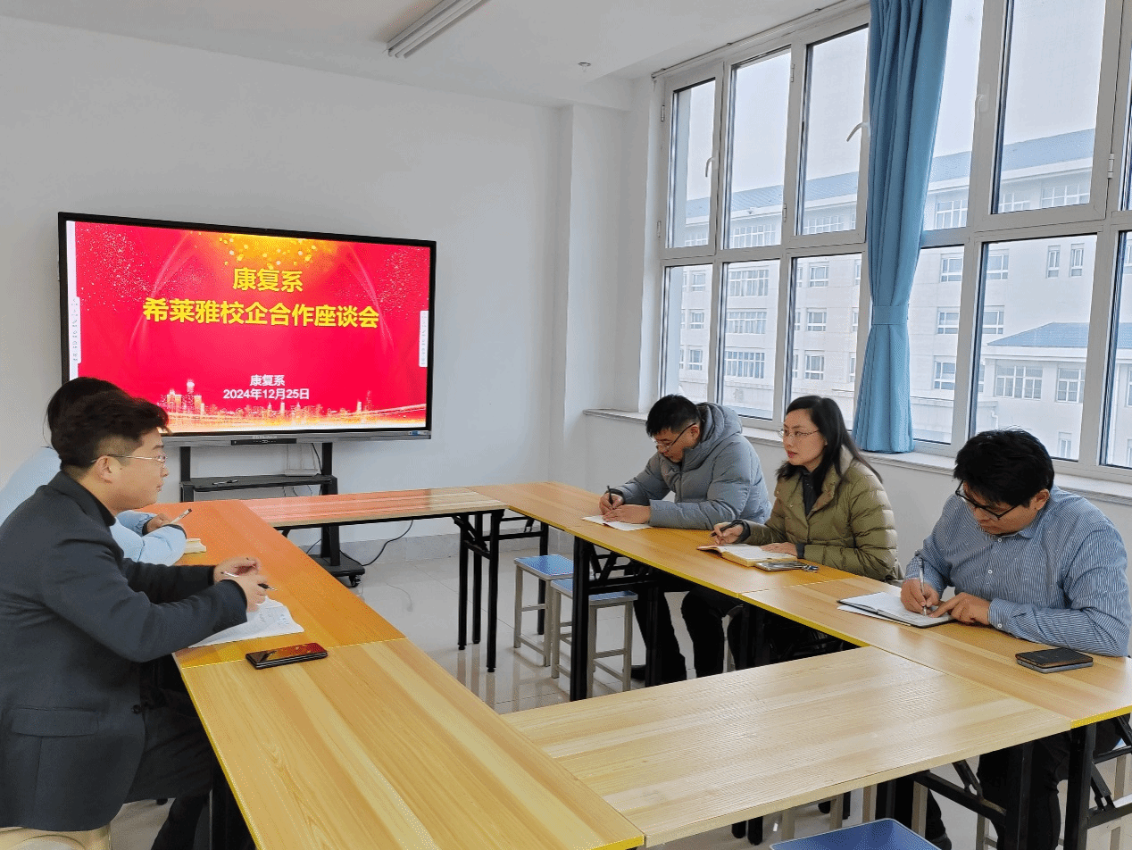 12月25日,康复系在三号教学楼与希莱雅开展了校企合作座谈。负责人高娜、教研室主任王可、孙文强与青岛希莱雅合美健康产业发展有限公司董事总经理李胜、总监苏杭进行了深入探讨交流。
