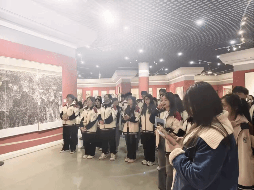 为推动思政教育“小课堂”和社会“大课堂”有效融合,近日,学院2024级中药学1班的同学们走进泰安市美术馆,开启了一场别开生面的“场馆里的思政课”。馆内,一场“大河上下·我们是黄河、我们是泰山——黄河流域三省十一地市美术作品巡回展”正在展出,百余幅丹青画卷化作立体教材,将黄河文明与泰山精神娓娓道来。壶口瀑布挟裹着千年文明奔涌向前,与巍峨的泰山遥相呼应,这些巨幅画作生动展现了黄河流域的自然风光、人文历史、民俗风情以及新时代黄河流域生态保护和高质量发展的生动实践。大家在艺术氛围中探寻黄河和泰山文化密码,汲取中华优秀文化养分。
