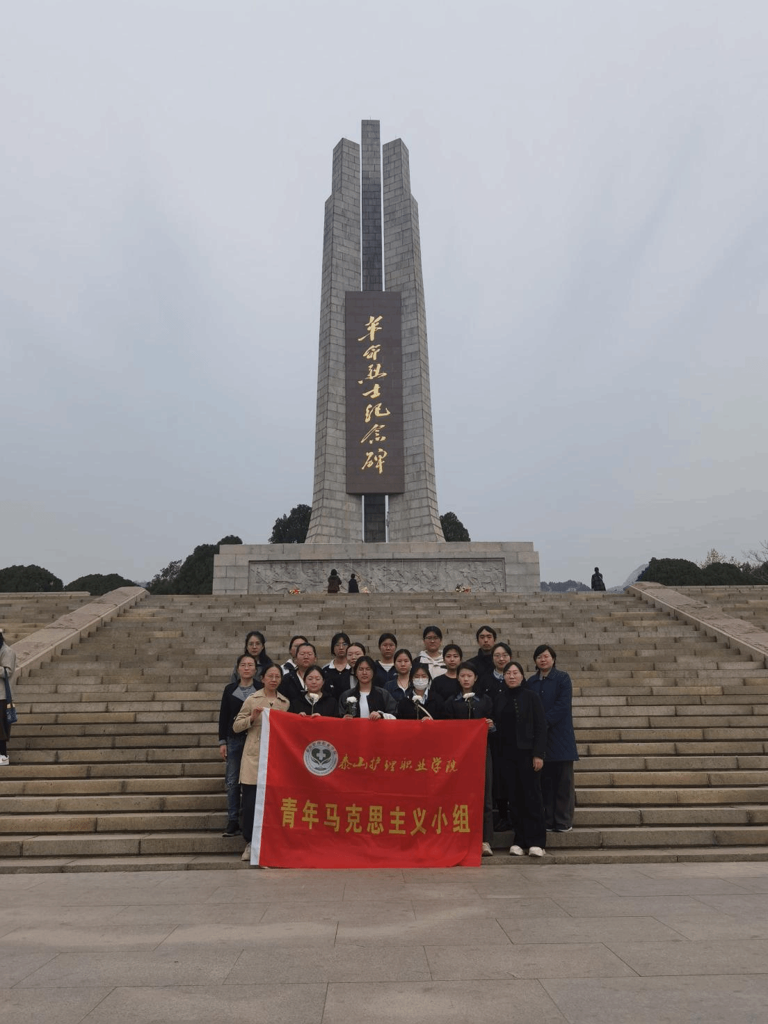 清明节当天,思政教师们带领青年马克思主义小组学生代表前往泰安革命烈士陵园参加祭奠活动。在革命烈士纪念碑前,师生们怀着崇敬之情,整齐列队,向革命先烈敬献花篮,默哀致敬。