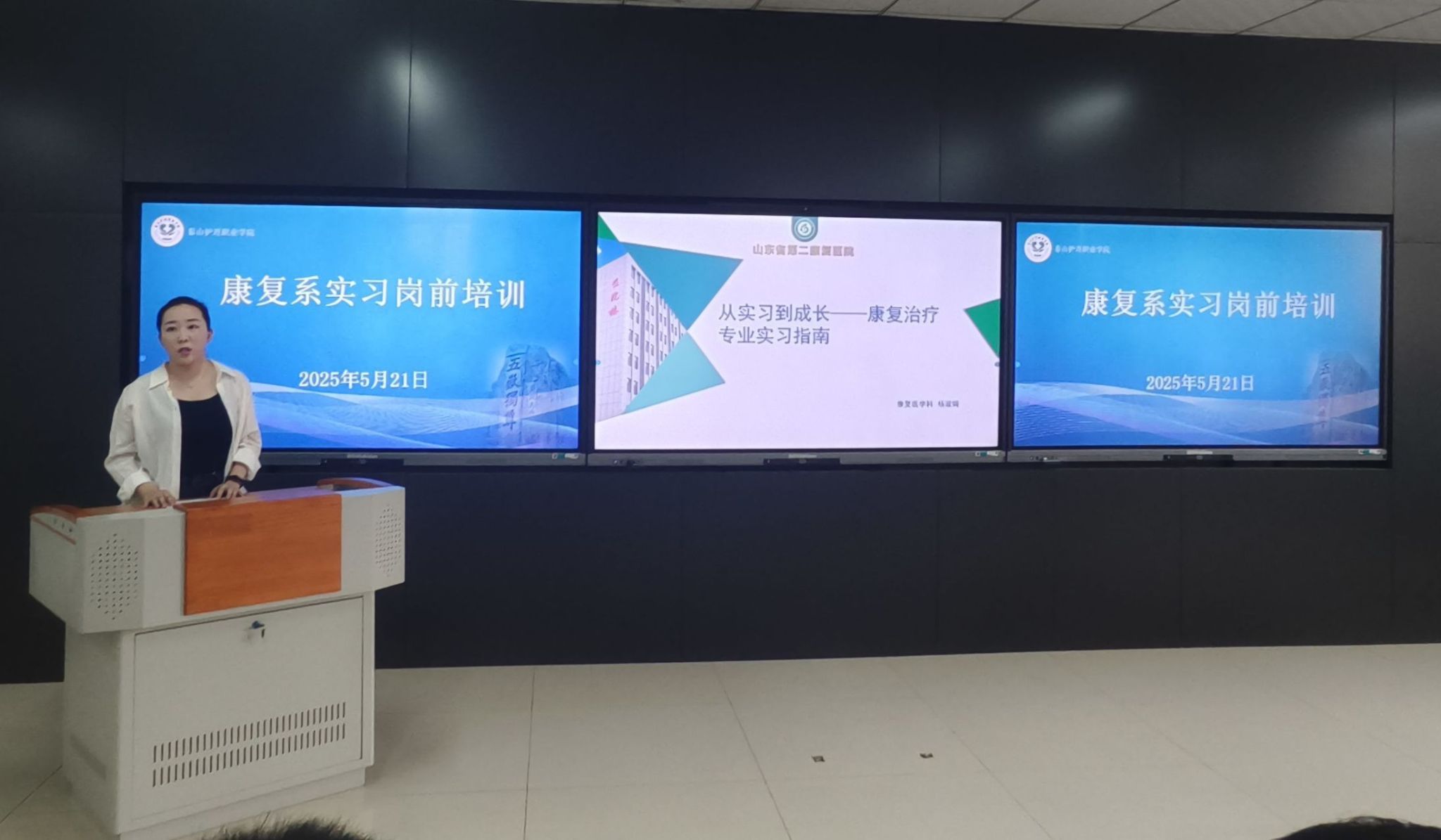 康复系主任高娜在总结时指出,此次岗前培训助力 2023 级学生迈向临床实践,强调实习阶段的重要性,提出 “责任、学习、仁心” 三大核心要义,以 “四个转化” 寄语学生,期待他们在实习中成长进步。