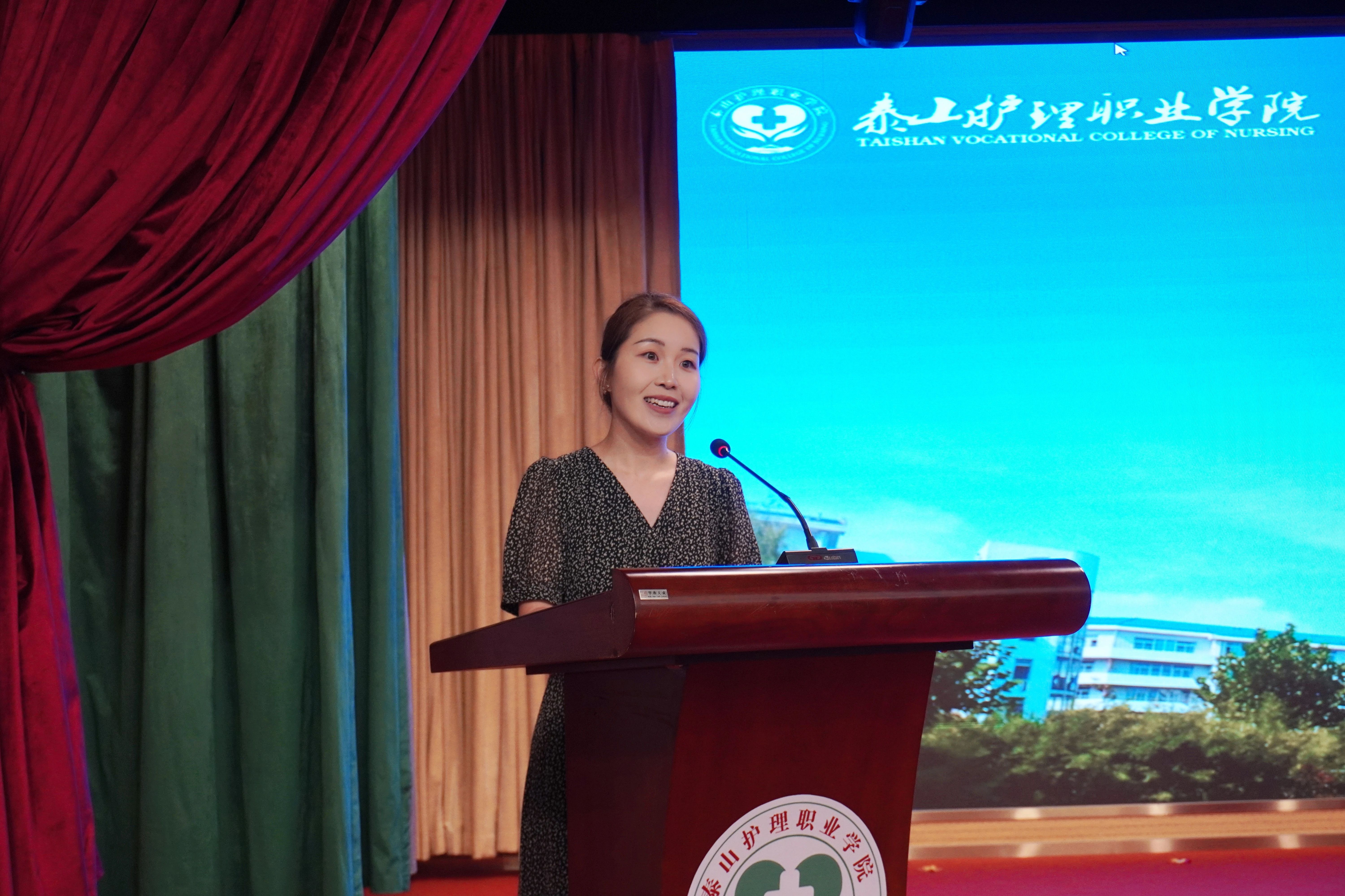 会上,新教师代表袁洁进行了表态发言,表示将不断提高思想政治素质,模范遵守职业行为准则规范,在高职院校这片广阔天地中施展才干,为培养德智体美劳全面发展的社会主义建设者和接班人贡献力量。