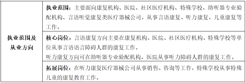 按照国家康复服务需求比的标准进行推算,我国听力师和言语治疗师的需求为26万人(目前仅有5000人),言语听觉康复专业人才缺口巨大。专业潜力大,就业前景宽广,发展言语听觉康复技术势在必行。