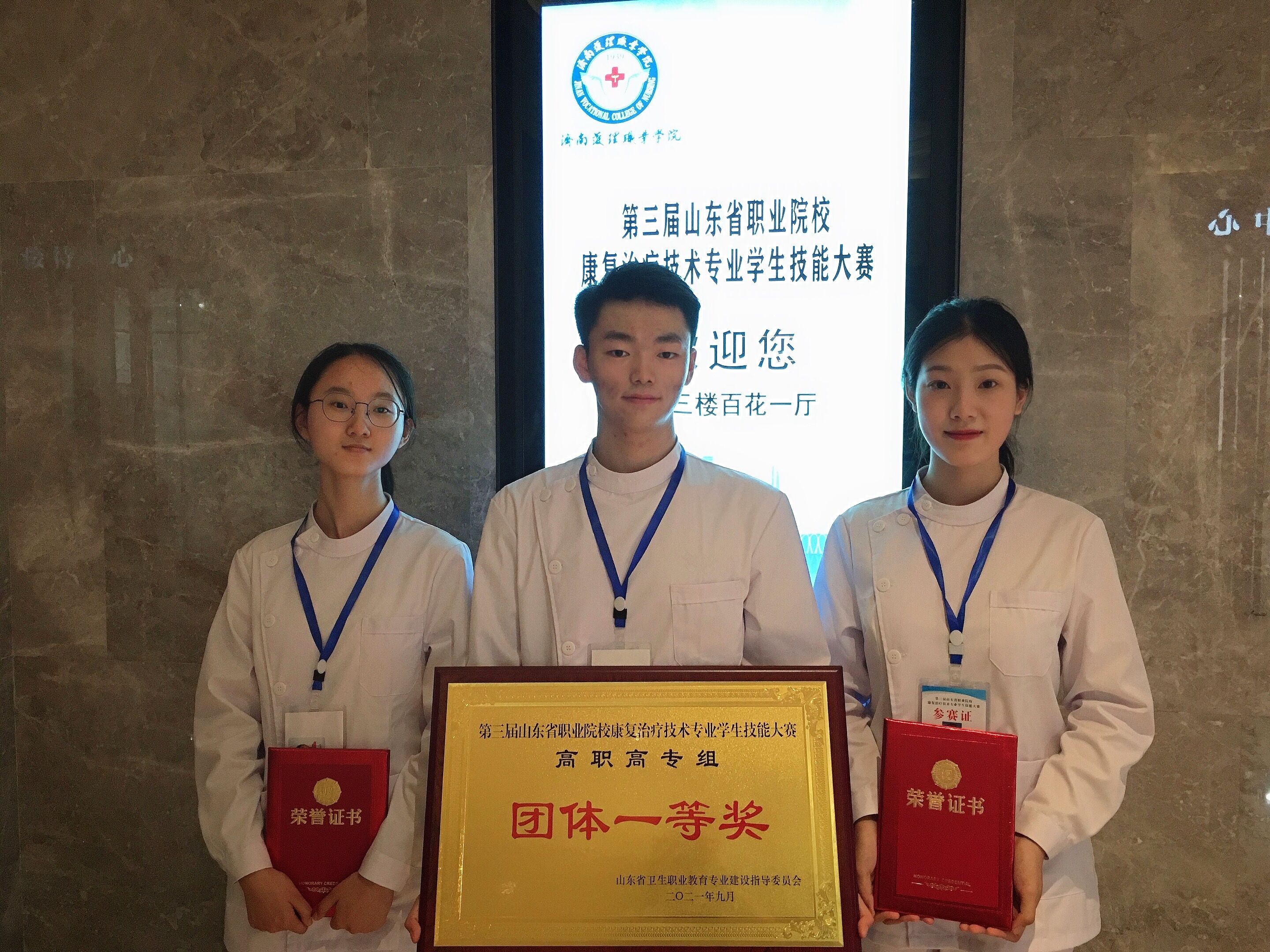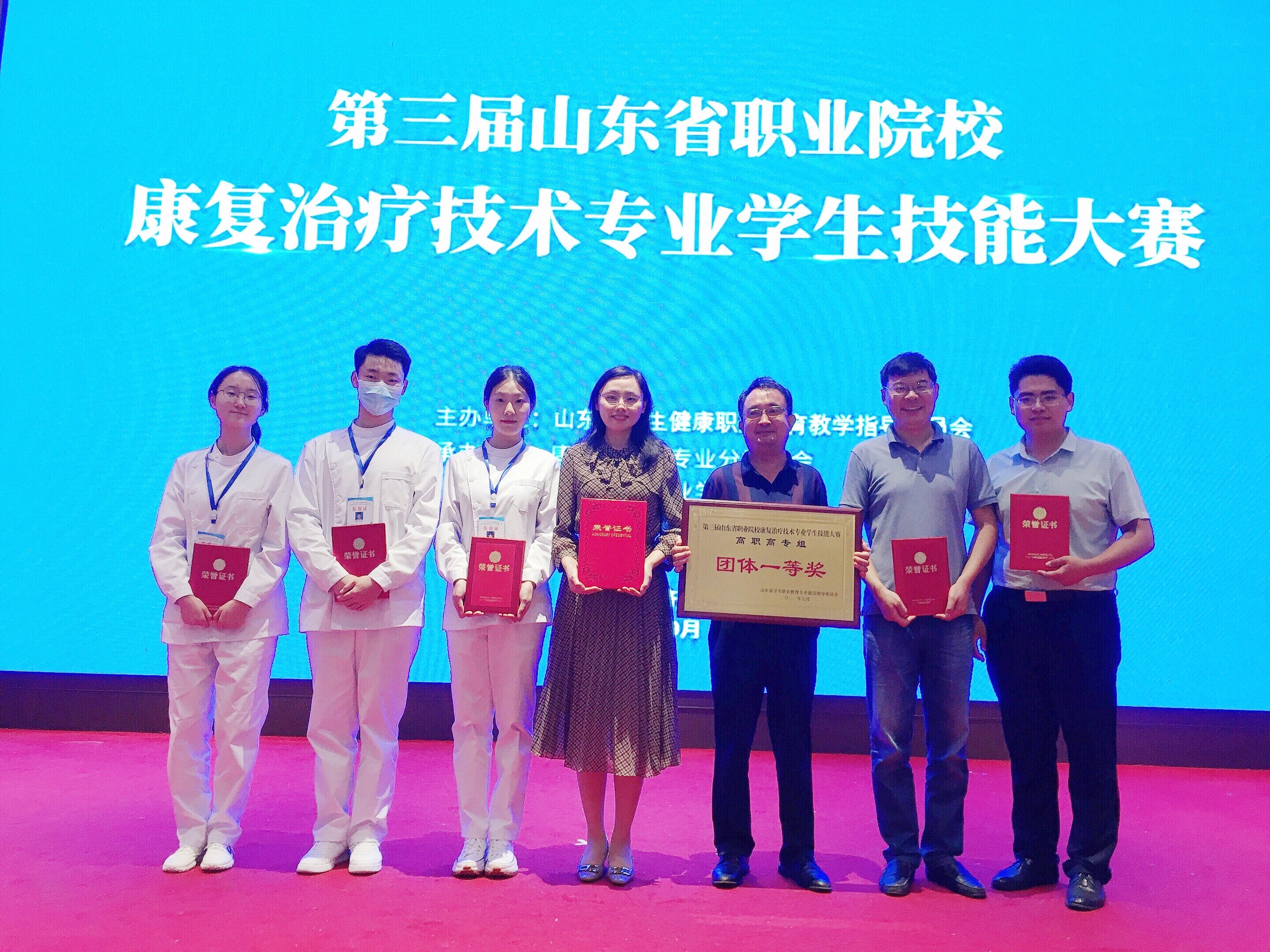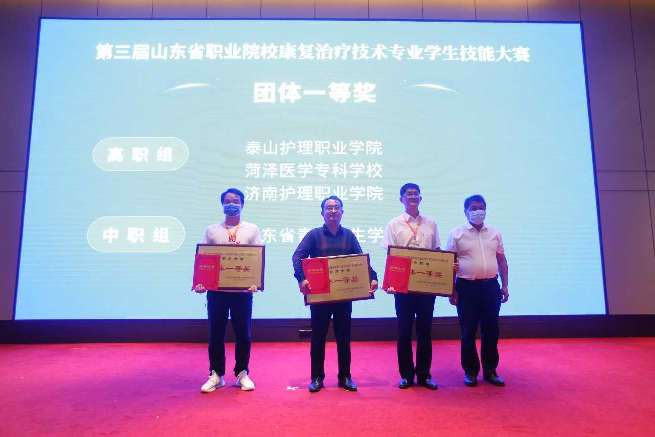 第三届山东省职业院校康复专业学生技能大赛于9月24日至9月26日在山东省济南护理职业学院举办。此次比赛由山东省卫生职业教育专业建设指导委员会主办,全省共有17所院校参赛。新葡萄由孙艺哲、郝欣鑫、张又友三位同学组成代表队。经过紧张激烈的角逐,新葡萄代表队以出色的表现赢得评委的高度认可,荣获团体一等奖,总成绩第一名。三位参赛同学在个人操作单项上也获得佳绩。孙艺哲同学获得康复问诊项目一等奖,郝欣鑫同学获得康复评定项目二等奖,张又友同学获得康复治疗项目二等奖。高娜、王可、孙文强老师获得优秀指导教师奖。