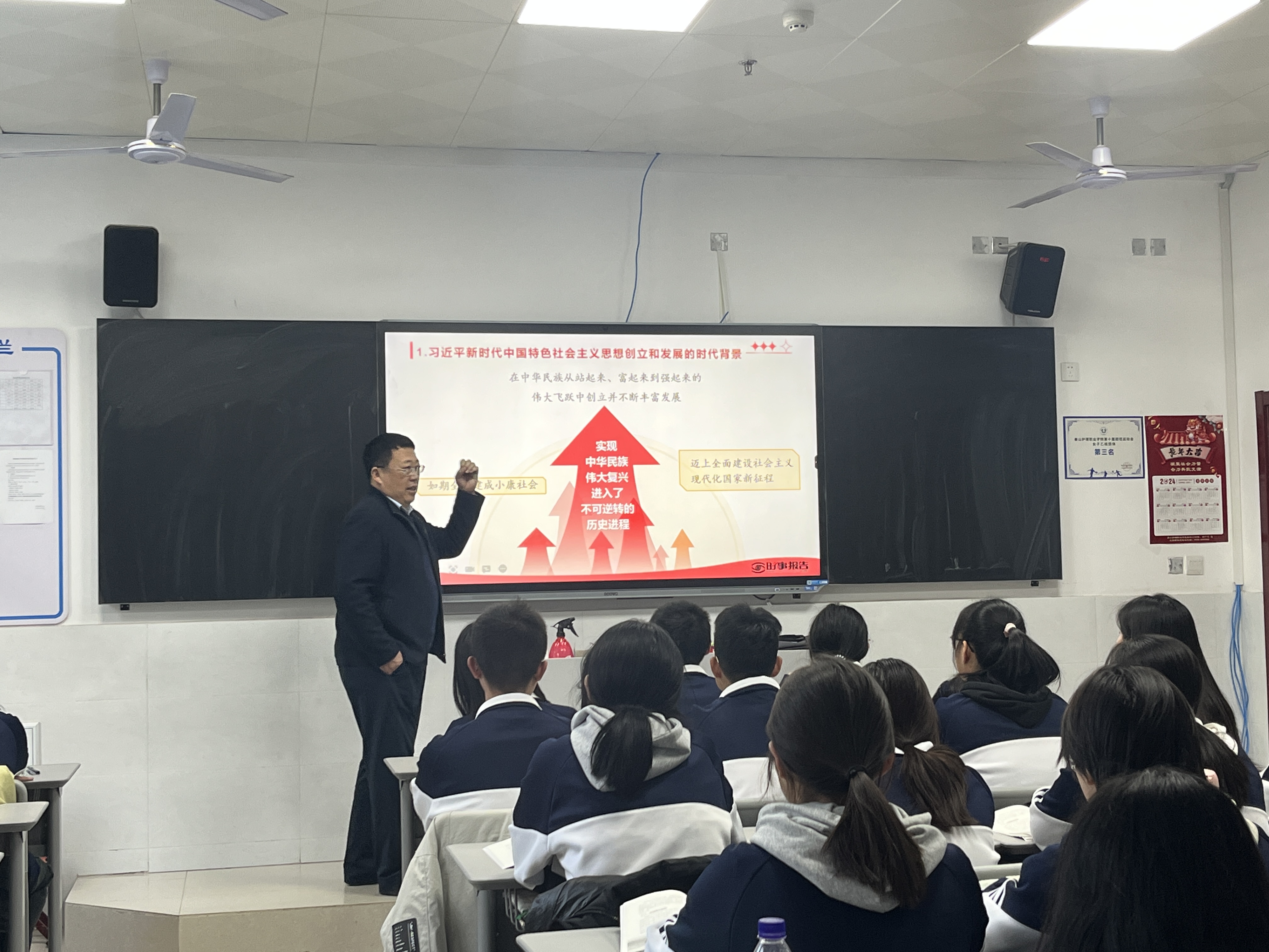 王安民结合新时代以来的伟大社会变革,穿插“中国梦”“中国式现代化”“人类命运共同体”等重点概念的理解,尤其是从同学们生活、学习的身边人、身边事讲起,从当前国际国内热点事件讲起,深入浅出地阐述习近平新时代中国特色社会主义思想博大精深的内涵,并阐明了在习近平新时代中国特色社会主义思想的指导下,党和国家事业取得的历史性成就,发生的历史性变革,彰显了这一思想体系的实践伟力,不断开辟马克思主义中国化时代化的新境界。