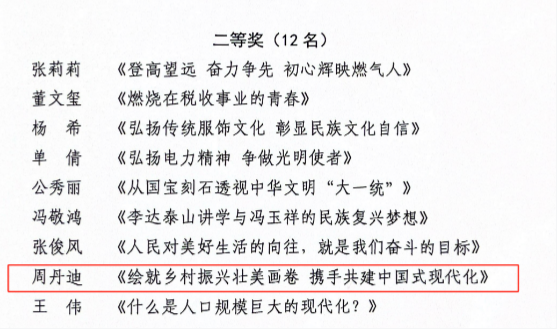 近日,学院思政部教师周丹迪在“春回大地·理响泰安”理论宣讲春季赛中凭借题为《绘就乡村振兴壮美画卷 携手共建中国式现代化》的精彩宣讲,荣获二等奖。