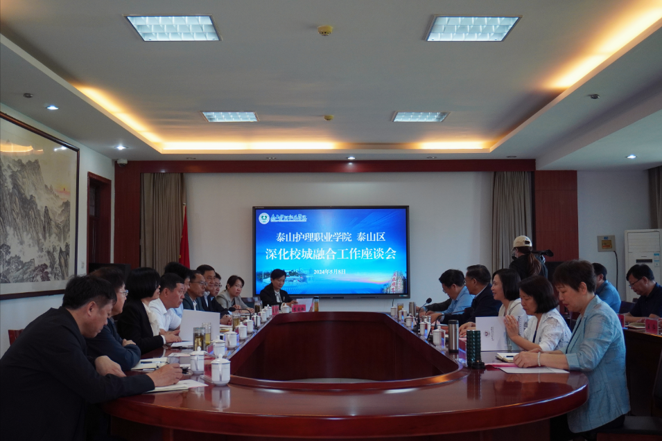 5月8日上午,深化校城融合座谈会在学院行政楼会议室举行,学院职业教育活动周拉开帷幕。学院党委书记黄正玉出席并主持会议,泰山区委副书记、汶河新区党工委书记、管委会主任贾夫军,泰山区人大常委会党组成员、副主任王景银及泰山区相关部门、街道负责同志,学院党委副书记、院长荆丽艳及有关院领导和相关处室、系部主要负责同志出席会议。