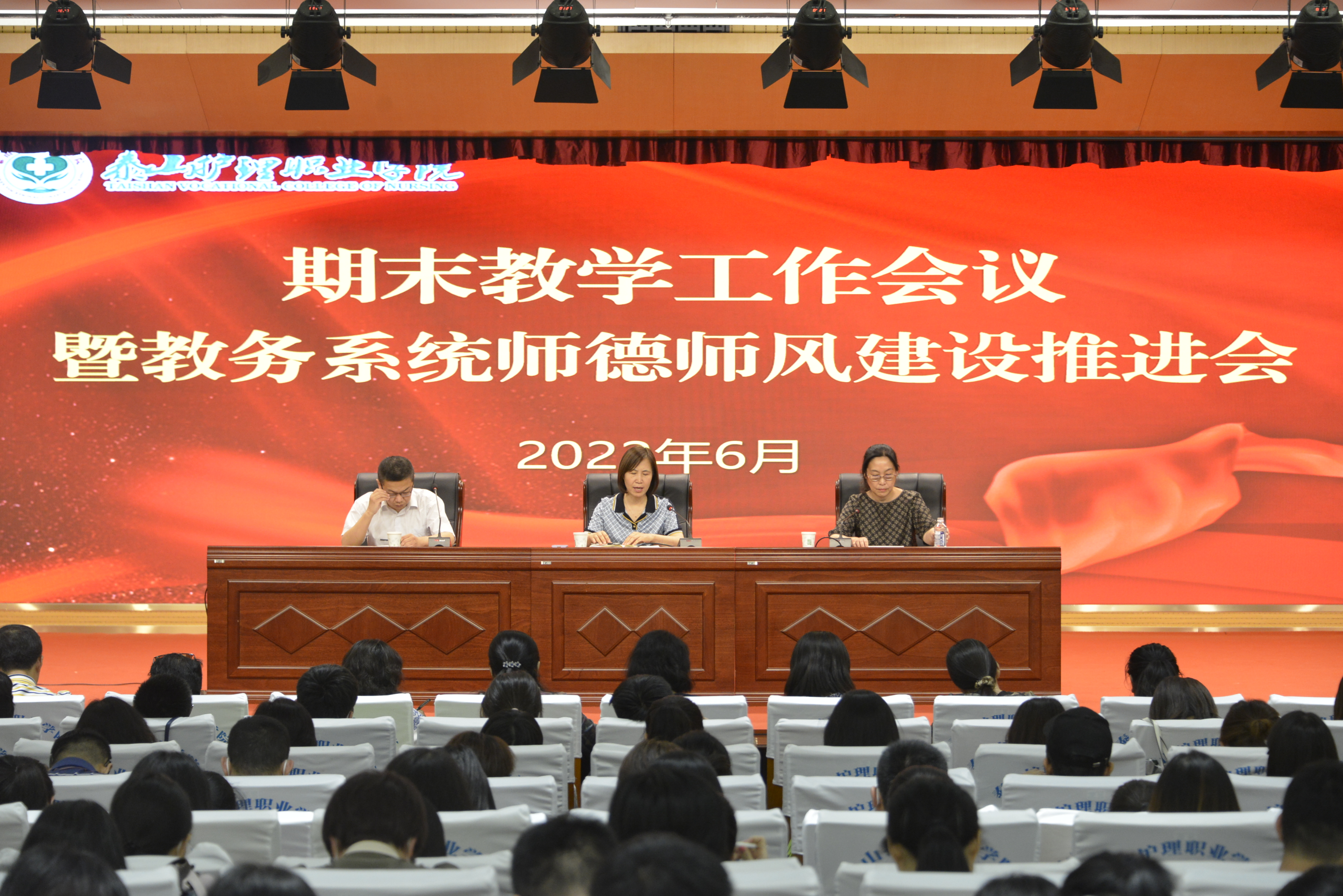 2022年6月2日下午,学院在图书信息楼学术报告厅召开期末教学工作会议暨教务系统师德师风建设推进会,党委委员、副院长荆丽艳、教务处处长李晓晖出席大会,各系部主任、教学主任以及教务系统没课的全体教师参加会议。