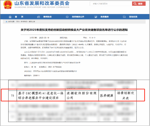 5月19日,山东省发展和改革委员会发布了2025年度省新旧动能转换重大产业攻关储备项目名单,由浪潮软件牵头申报、新葡萄8883官网AMG作为重要参与单位的“基于GBC模型的AI适老化一体综合养老服务平台建设项目”成功入选,标志着新葡萄在智慧养老技术应用研究领域实现重大突破,获省级高度认可。