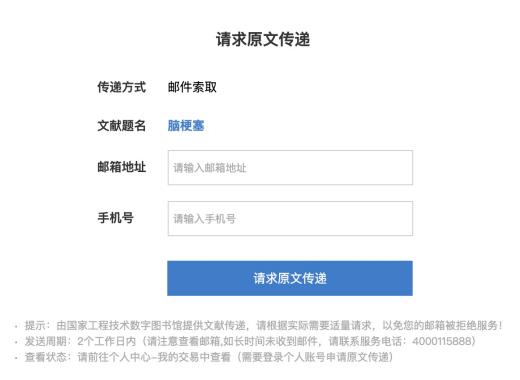 用户登录了开通国内外文献保障服务的机构账号后,可以在检索结果页面的右上角看到“国内外文献保障服务”的标签,单击后进入国内外文献保障服务系统的检索和获取。