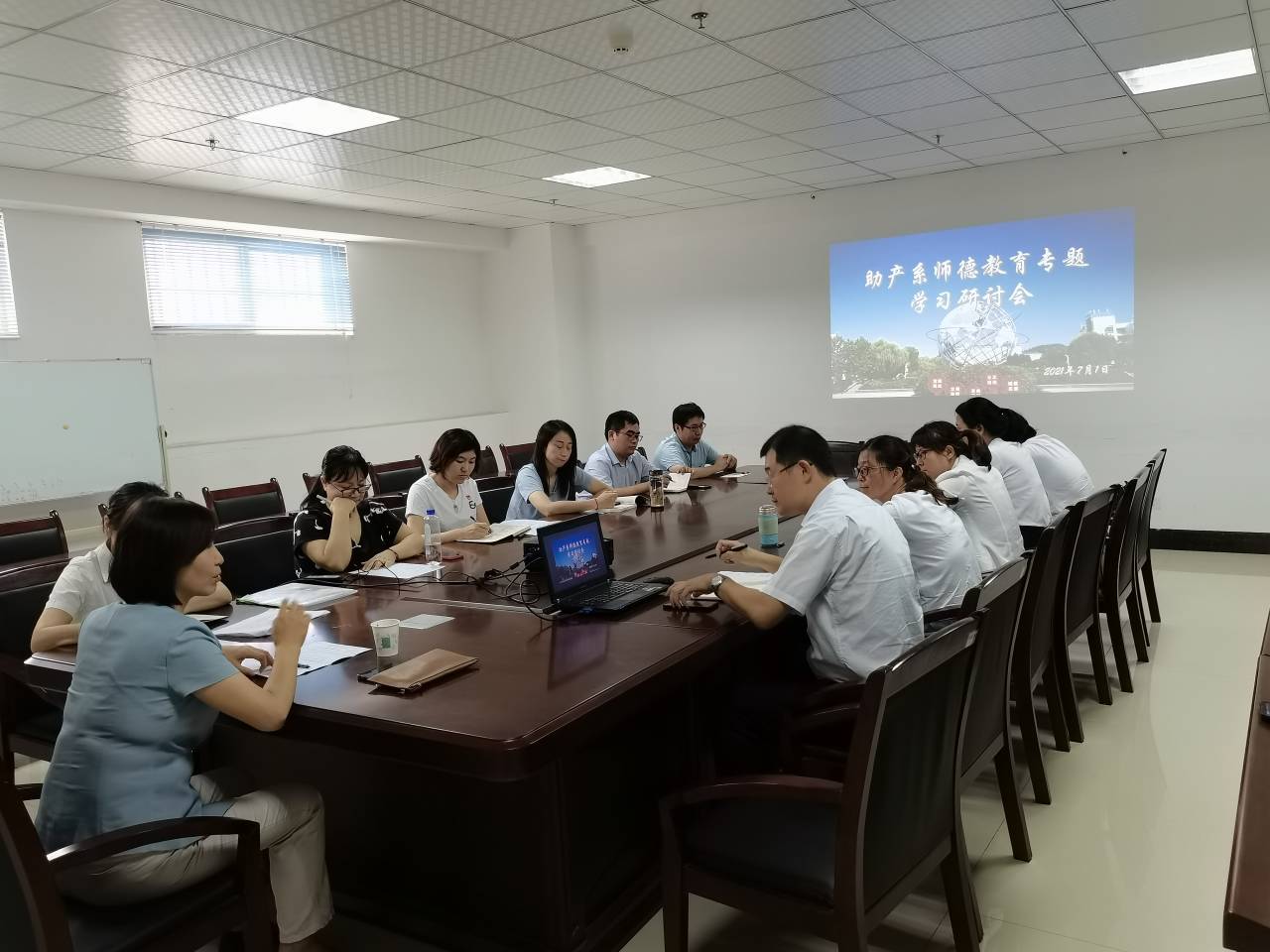 7月1日下午2:30,助产系在图书楼4楼会议室召开师德专题教育学习研讨会,学院党委委员、副院长荆丽艳出席会议,助产系全体教师参会,助产系主任陈青主持会议。